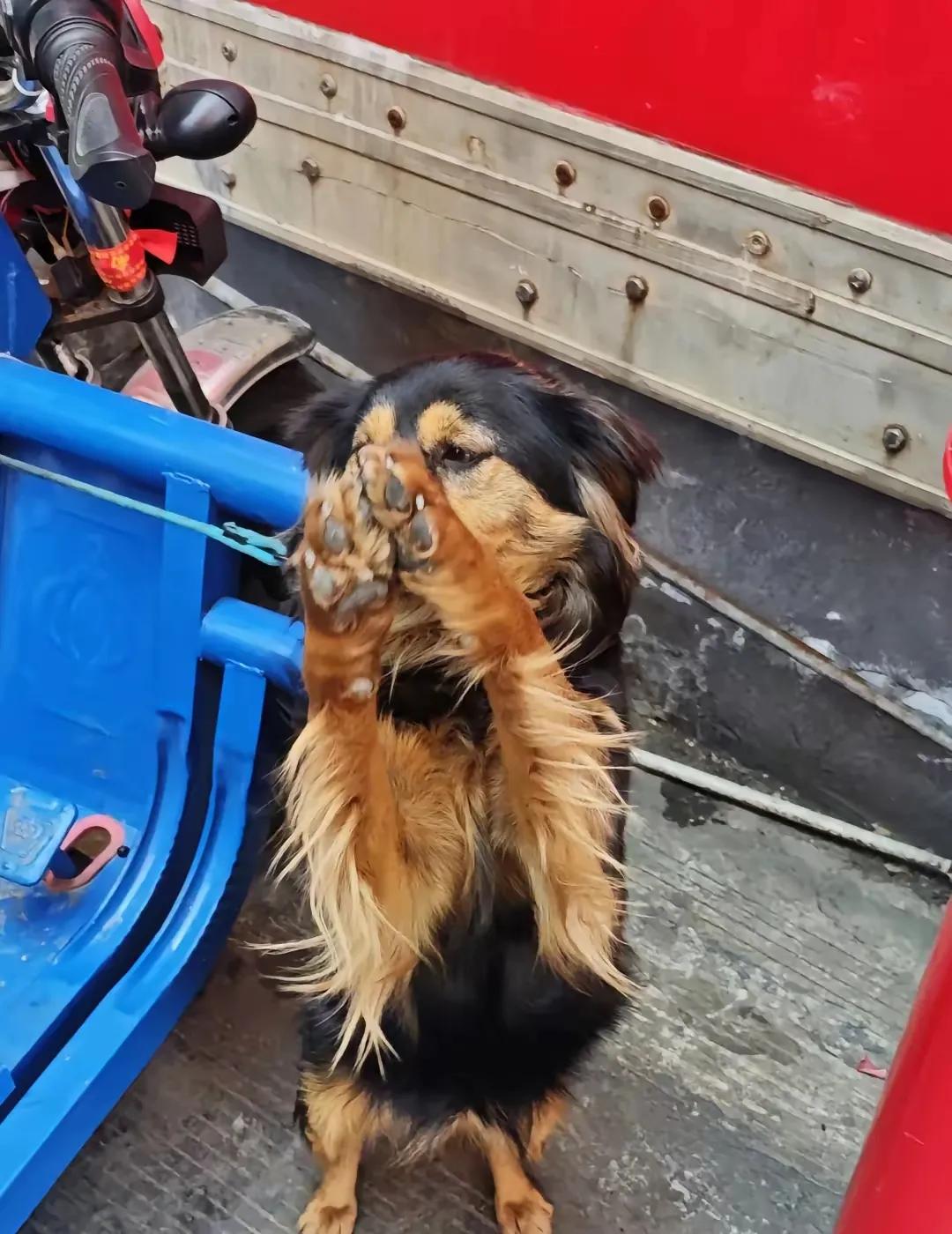 路边拾破烂的老头收养的流浪狗,老头因病去世,葬礼结束后,所有人都走了,狗狗被孤零零的遗忘在角落处。它被绳子拴着,连出去流浪的机会也没有。已经两三天没有吃喝了,只要有路人从它身边经过,它就会立起身子拜拜。虽然不会说话,狗狗在用肢体语言请求路过的人:行行好,救救我。