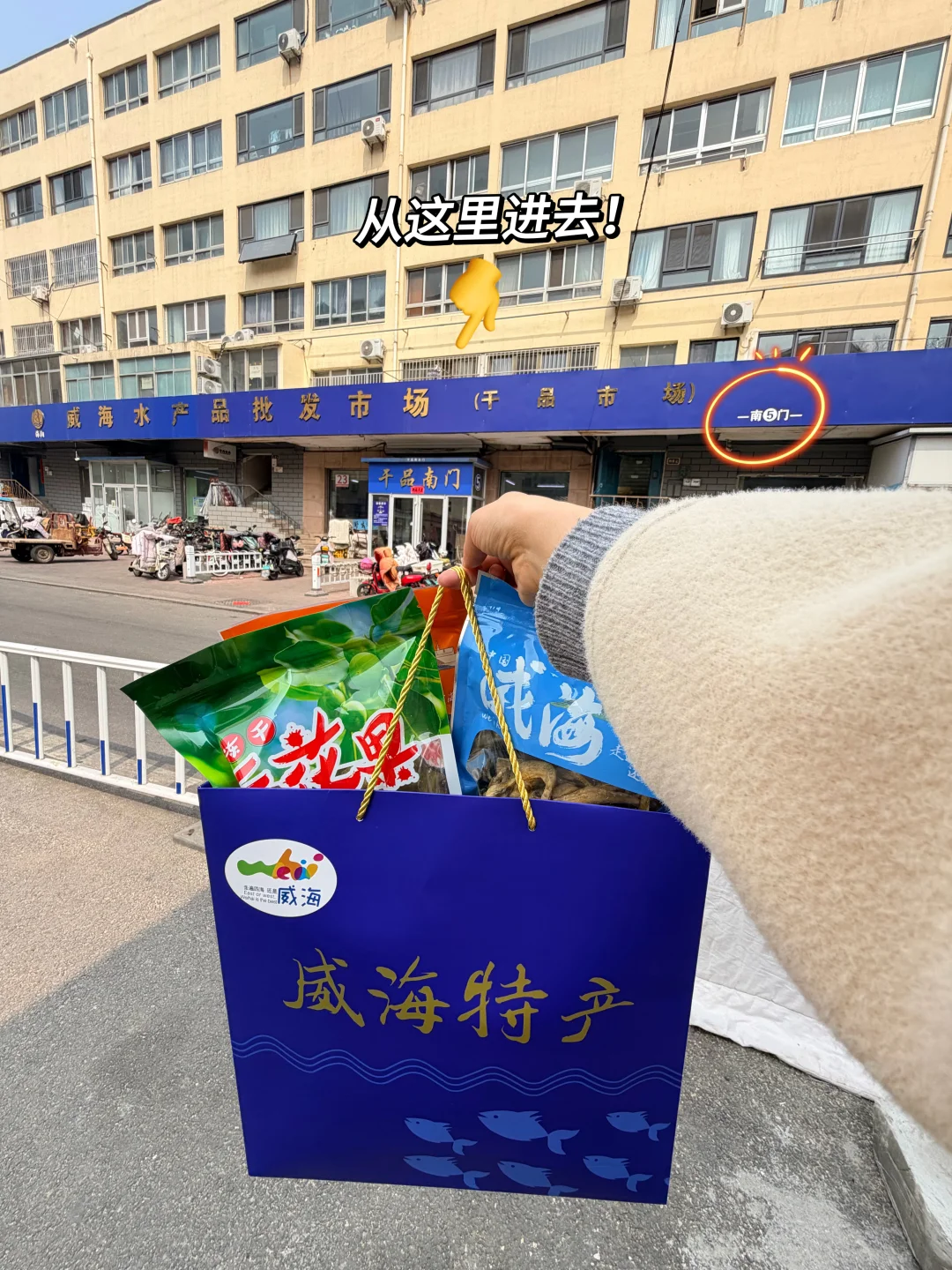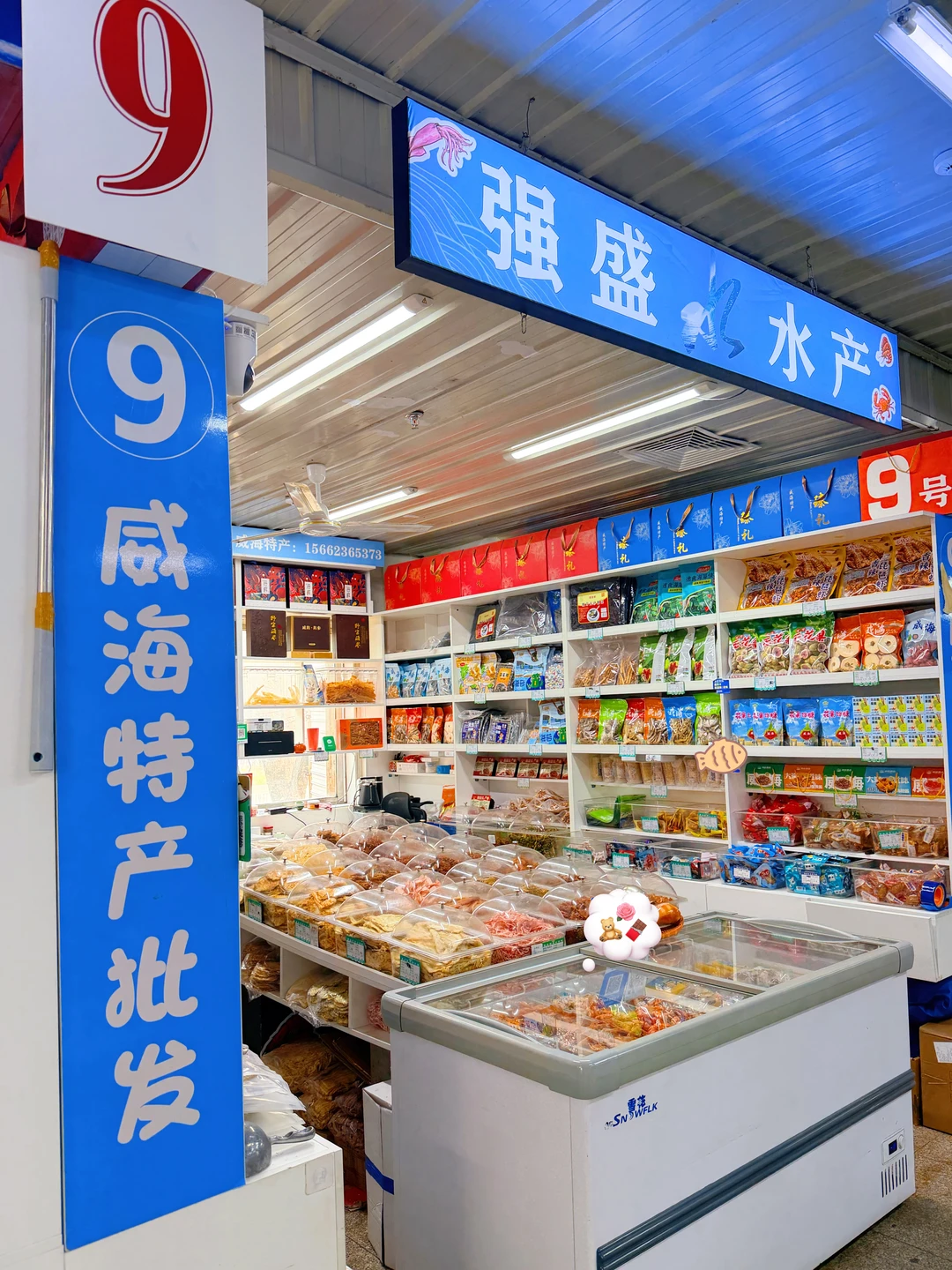 因为景区内的东西价格都不低,为了找到物美价廉的特产,我直接冲了威海水产批发市场!这是威海本地人自己买海鲜的地方,因为是批发市场,价格都很划算,市场分为水产区和干品市场: