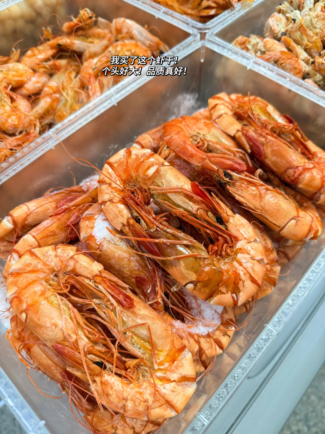1️⃣ 大个头烤虾干(45)先买了品质很好的虾干,在冷柜里保存的,个头很大,带回家给孩子煲汤太合适了!