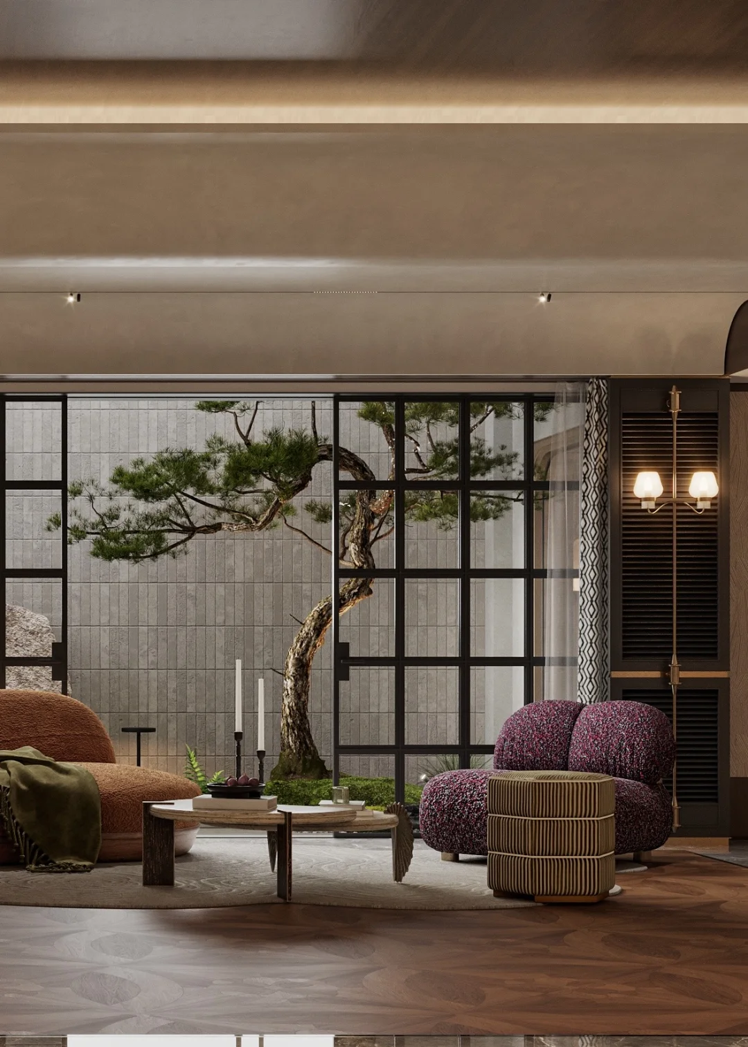 昆明端头别墅地下室,把老钱风刻进细节里。昆明900㎡端头别墅设计 一侧...