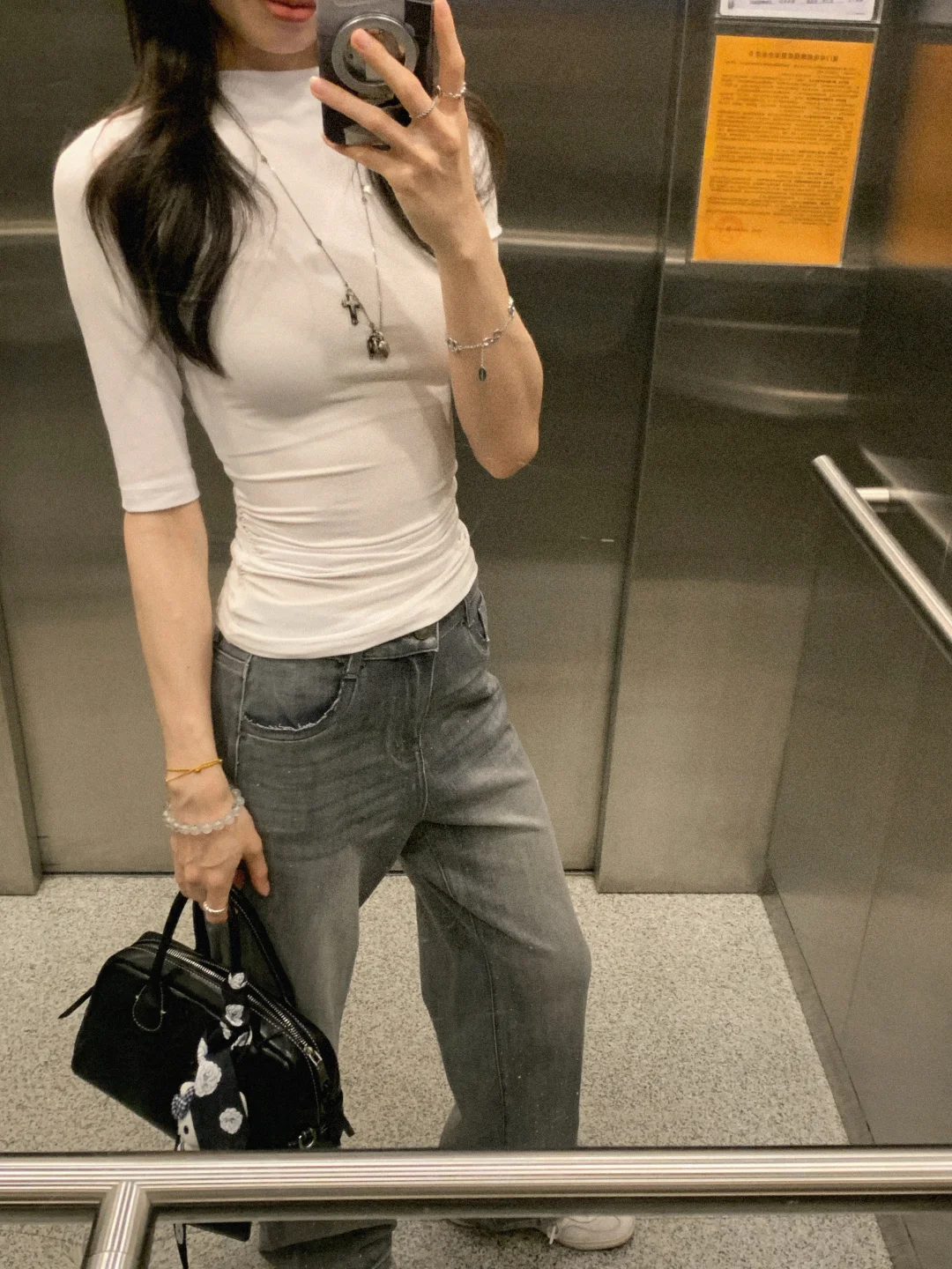 我的上班通勤穿搭 职场打工人穿搭 基础款穿搭 正肩t恤 短袖T恤 胶囊衣橱 气质穿搭
