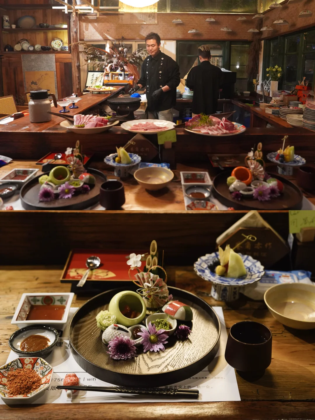 谁懂啊家人们!在观音桥闹市藏着这样一方净土🌿 从马鞍山跨江而来的巷角亦作,把庭院日料的浪漫搬进了重庆院子里,避开人潮,沉浸式解锁日式治愈感,约会/闺蜜小聚直接封神✅ 📍地址:江北区观音桥欧街92号(重庆院子内) ⏰营业时间:17:00-22:00(建议提前预约,避免跑空哦) 🚇交通:地铁3/9号线观音桥站步行10分钟,进重庆院子随便问一句就能找到~ 🌿关于环境|闹市中的隐世庭院 推开木门就像穿越到京都小巷,曲径通幽,绿植缠绕,灯笼轻轻摇晃,树影婆娑,入夜后氛围感直接拉满,复刻昭和电影里的温柔场景✨ 两层小楼藏满巧思,一楼板前位可以近距离看厨师操作,像看一场美食表演;二楼有大厅、包间和露台,不管是想热闹小聚还是安静私享,都能满足✅ 每一处角落都好出片,木质装修+暖黄灯光,随手拍都是氛围感大片,原相机直出无压力! 🥩关于美食|和牛与日料的双重盛宴 不愧是巷角亦作,出品从来不会让人失望,江北店比老店多了更多日料选择,每一道都像艺术品👇 ✅ M8/M9和牛烧肉:霜降纹理像冬日初雪,炭火轻炙后油脂滋滋作响,香气瞬间弥漫,入口鲜嫩爆汁,脂香浓郁不腻口,每一口都是舌尖盛宴👏 ✅ 刺身三品盛合:新鲜到仿佛带着海洋的气息,肉质细腻Q弹,入口即化,搭配芥末酱油,鲜到直跺脚 ✅ 八寸·初遇:五品珍味装在精致漆器里,鹅肝丝滑、海胆蟹腿鲜甜,每一口都是打开味蕾的密钥,精致到不忍下箸 ✅ 日替小钵料理:主厨随性创作的季节限定,当季食材在手中焕发新生,每一口都是与季节的美好邂逅 ✅ 抹茶甜品:收尾必点!细腻丝滑,余韵悠长,完美中和肉香,治愈感拉满 💡打卡Tips 1. 穿浅色系衣服(米白、杏色、浅灰),和庭院绿植、木质装修巨搭,出片率翻倍 2. 预约制用餐,菜单不定期更新,像开盲盒一样有惊喜,想吃招牌和牛记得提前说 3. 晚上7点后去,灯光亮起,灯笼摇曳,氛围感比白天更绝,适合拍氛围感照片 4. 老板和店员都超亲切,会像老朋友一样唠家常、讲食材的故事,体验感拉满 在观音桥逛累了,就来巷角亦作躲一躲吧~ 远离喧嚣,吃一顿精致日料,慢下来感受生活的美好,这才是重庆的正确打开方式呀❤️