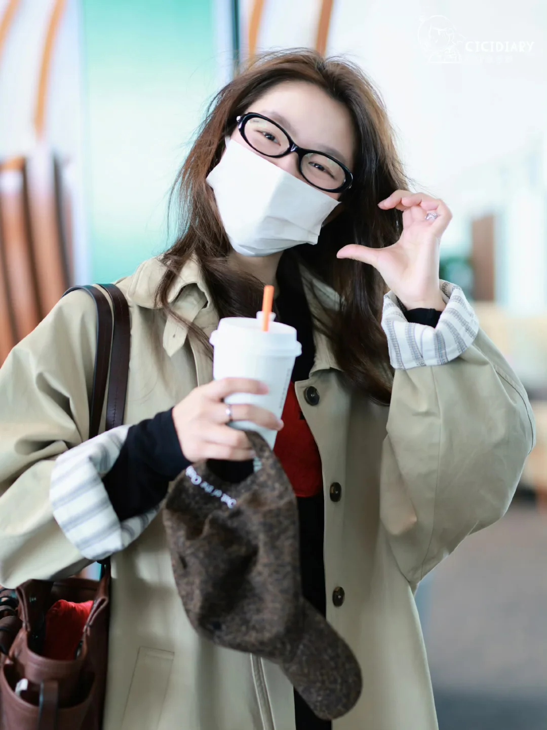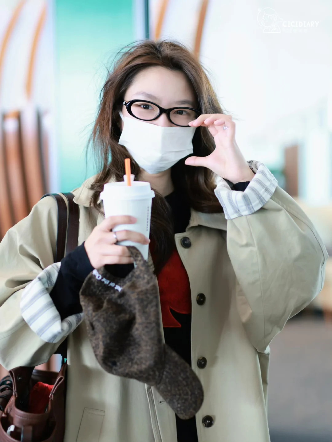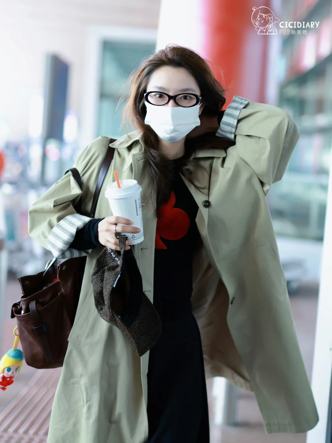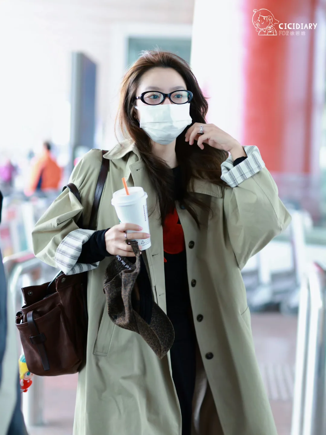 好久不见徐若晗机场,风衣穿搭好韩