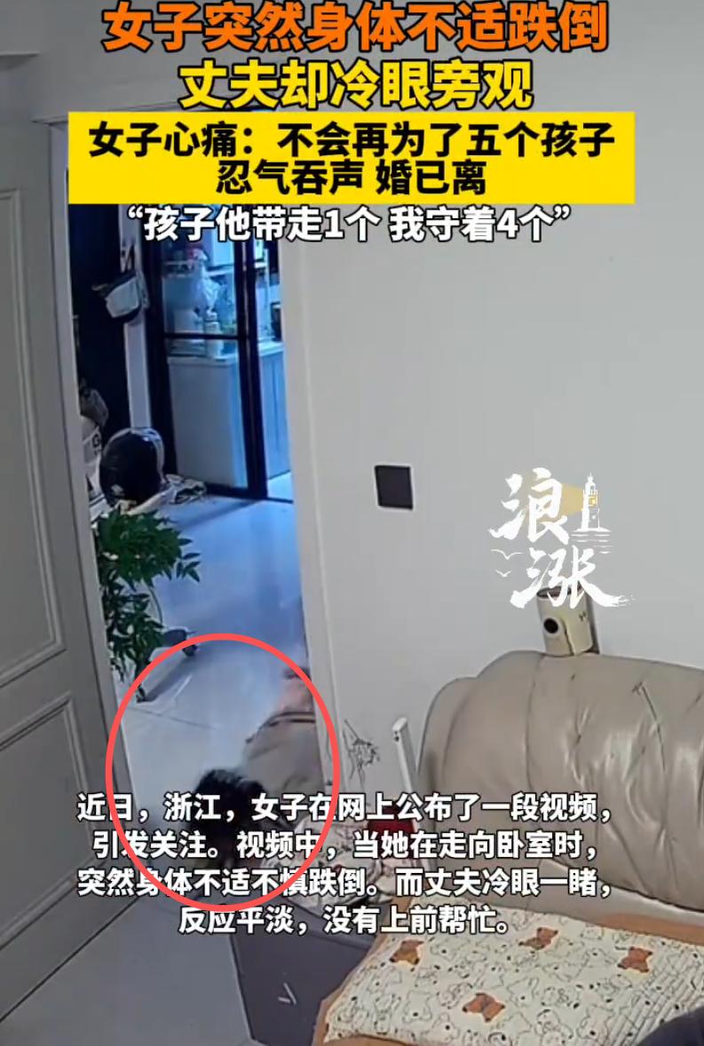 “彻底寒心了!”浙江,一名五个孩子的妈妈在客厅突然跌倒在地,可坐在客厅的丈夫看到后却无动于衷,依旧玩着自己的手机,事后女子也是彻底认清现实,直接选择离婚,一个孩子归丈夫,自己带着四个孩子 从家中监控显示,当时已经是晚上11点,女子从客厅往卧室走的时候突然腿一软,整个人直接摔倒在地。她老公就坐在旁边,抬头看了一眼,然后继续低头玩手机 整个过程里,他没有站起来,没有伸手,甚至连一句你没事吧都没说。这位妈妈在地上躺了好一会儿,最后自己撑着爬了起来 后来她把家里的监控视频发了出来。她说那一瞬间,自己彻底清醒了。不是摔疼了,是心寒透了。一个跟你生了五个孩子的人,在你倒下的那一刻,连最基本的反应都没有,这段婚姻还有什么意思 目前两人已经办了离婚。五个孩子,老公带走一个,她自己带着四个 这件事在网上吵得很厉害。大多数人都在骂那个男的冷血,说夫妻一场,就算没有感情了,看到人倒在地上,基本的反应也该有吧 这话没错,但如果我们稍微往后退一步看,会发现比这一眼冷漠更让人难受的,是这种冷漠可能已经持续很久了。摔倒是最后一根稻草,真正压垮她的,是之前无数个被无视、被当作空气的日常 这个妈妈带着四个孩子离婚,往后的日子肯定不会轻松。她愿意走这一步,说明在她心里,一个人扛四个孩子,也比继续跟那个人待在一起强。这不是冲动,是攒够了失望之后做的决定 至于那个丈夫,外人很难知道他当时到底怎么想的。也许他以为她只是绊了一下,也许他正在烦别的事,也许两个人的关系早就僵到连假装关心都懒得装了 但不管什么理由,在对方最需要反应的那一两秒里,他选了不动。这个不动,比任何争吵都更能说明问题。 一段婚姻走到这个地步,很少是因为一件事。那个视频只是把结局拍出来了而已