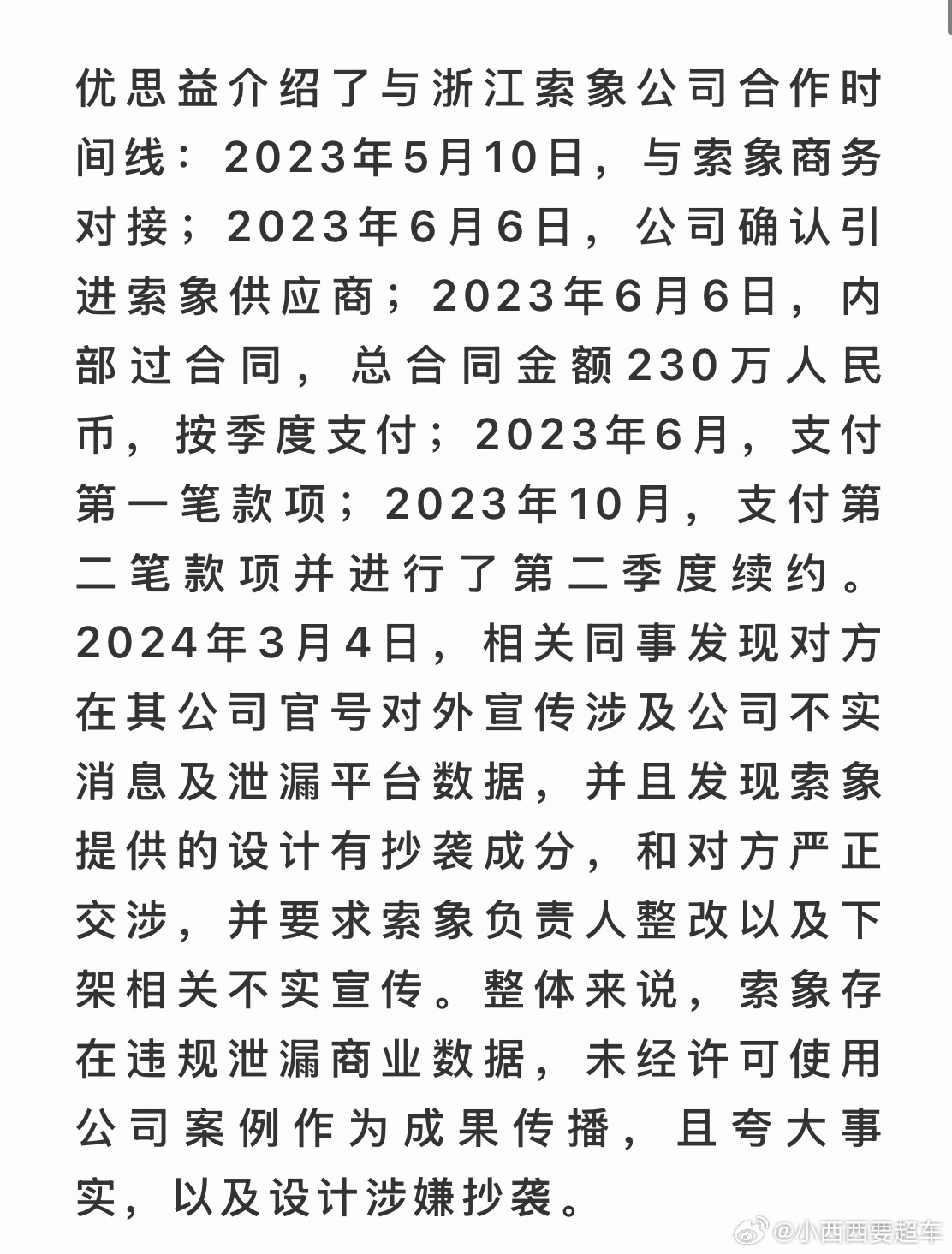 2. 责任归属:将危机归咎于合作方——浙江索象公司,指控其泄露商业数据、盗用案例宣传、设计抄袭等多项违规;