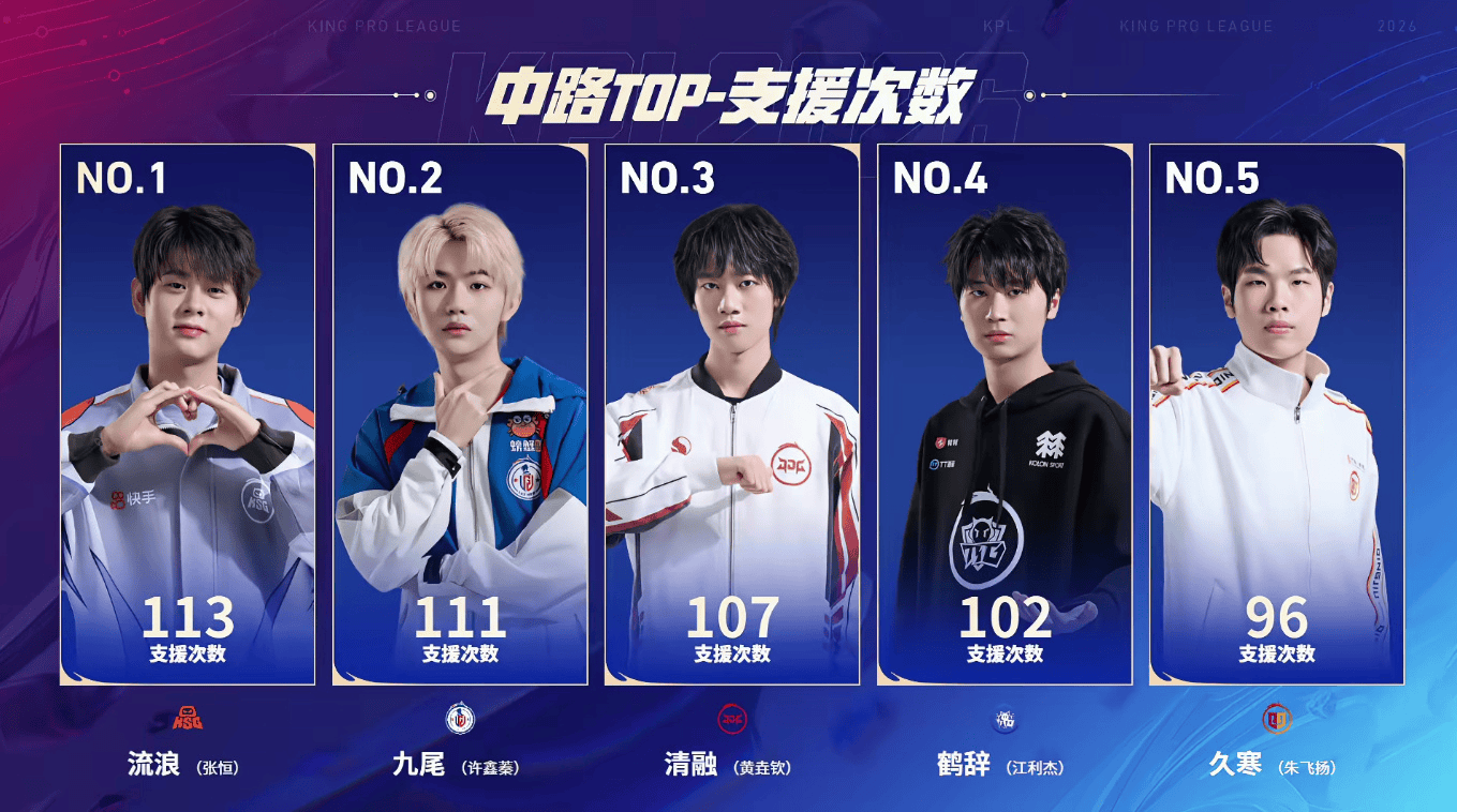 中路支援次数TOP1:KSG流浪(张恒)