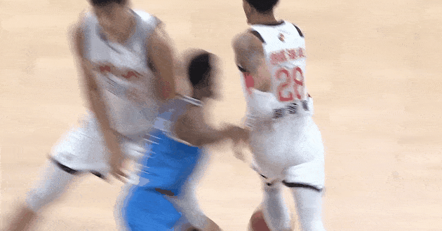 这个威金顿拿着球给徐昕砸脑袋了,结结实实一下