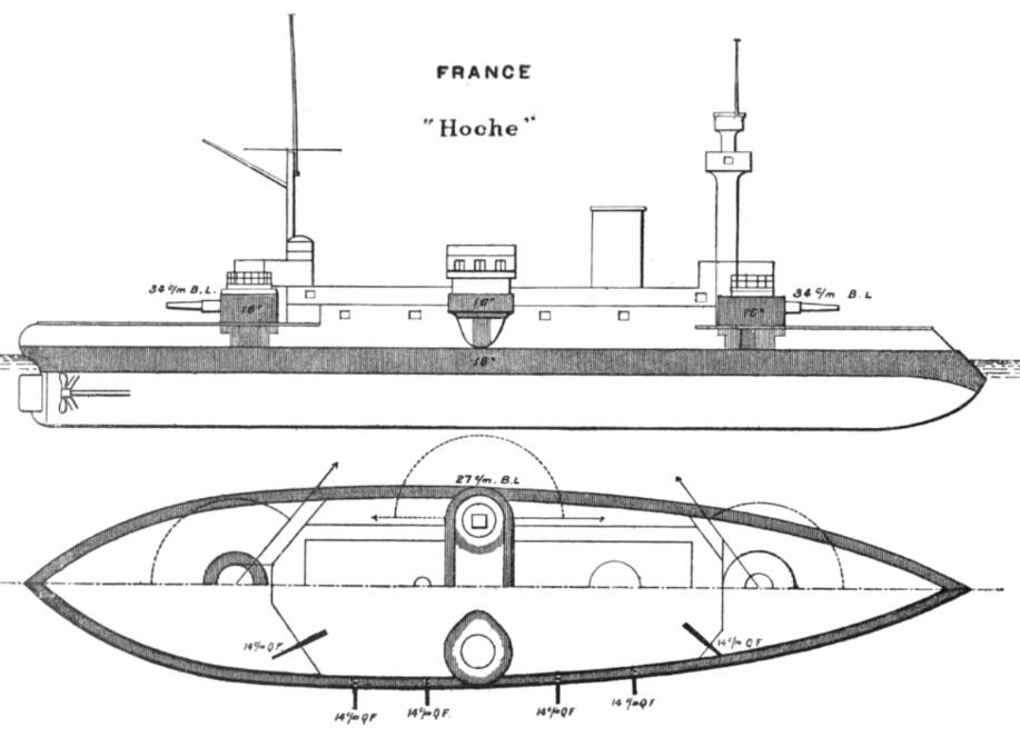 今天聊聊法国海军的老牌铁甲舰——“霍什”号(Hoche),这张照片拍摄于它1898年大改造之后,经过一番彻底升级,它摆脱了先天缺陷,焕发了第二春。 这次改造可不是小修小补,而是实打实的现代化升级,核心目的就是解决“霍什”号原本存在的诸多设计问题,让它能继续适应战场需求。 “霍什”号最头疼的问题就是容易侧翻,稳定性极差。为了改善这一点,工程师们砍掉了一部分上层建筑,减少船身顶部重量;还拆掉了6门138毫米副炮,进一步减负。 剩下的12门138毫米副炮,也全部换成了更新的型号,而且调整了安装位置,这样就算在大风大浪里,火炮也能正常操作,实用性大大提升。 动力系统更是彻底换新:老旧的火管锅炉换成了全新的贝尔维尔锅炉,原来的复合发动机也换成了三胀式蒸汽机。虽然改造后航速没提升,但新的动力系统更轻、更高效,大大降低了能耗。 这次改造总体来说非常成功:“霍什”号的满载排水量减少了500长吨,稳定性显著提高;重量减轻后吃水变浅,更多的装甲带露出水面,防护能力也间接增强了。 作为法国19世纪末铁甲舰的代表,“霍什”号的改造,也见证了当时海军舰船技术的进步与升级。