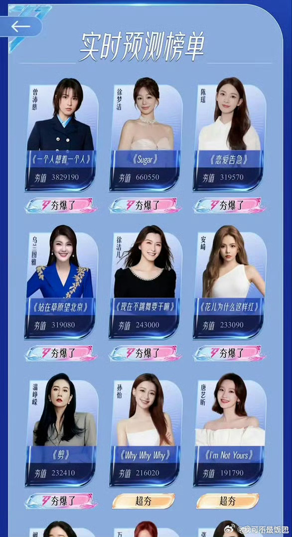 浪姐排名今晚浪姐排名真的惊到我!完全没想到初舞台取消淘汰,没有一位姐姐离开,太暖