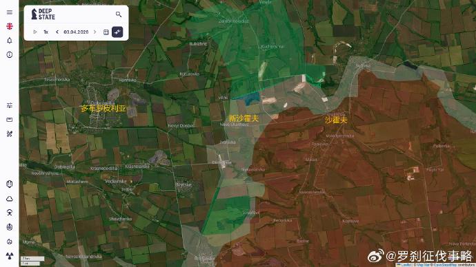 乌克兰官方信源 DEEP STATE MAP 4月3日 更新 一、苏梅州:俄军在 赫拉博夫斯克 南郊清理了大片土地。(图1) 二、多布罗皮利亚 方向:新沙霍夫 以北少量“灰区”再次变成“乌占区”。(图2)