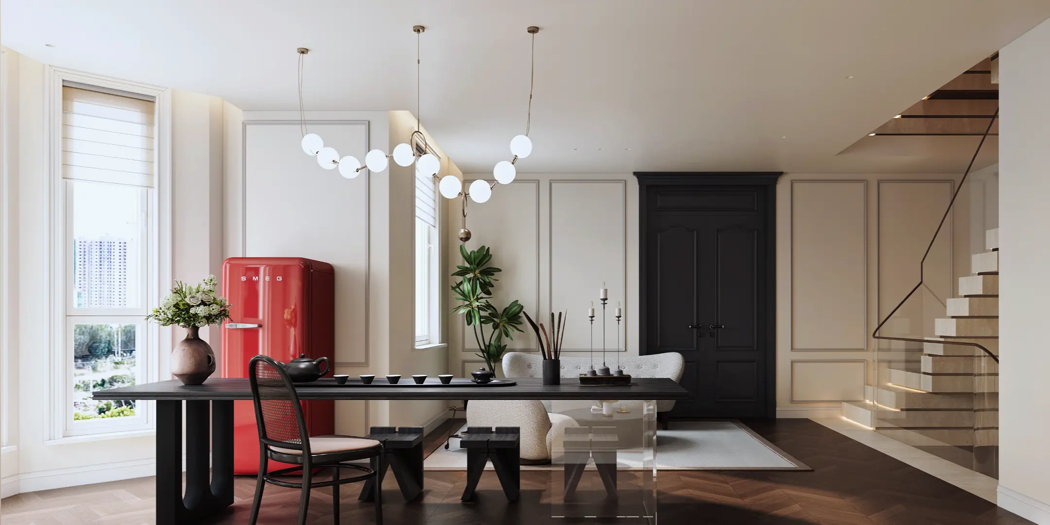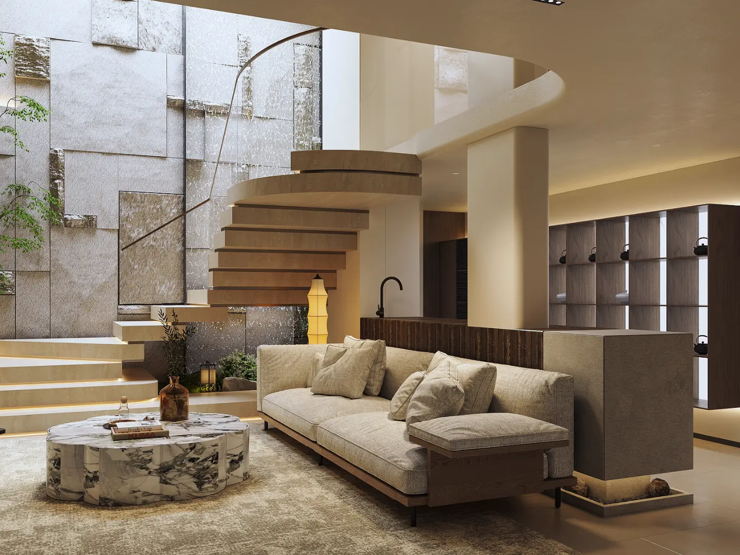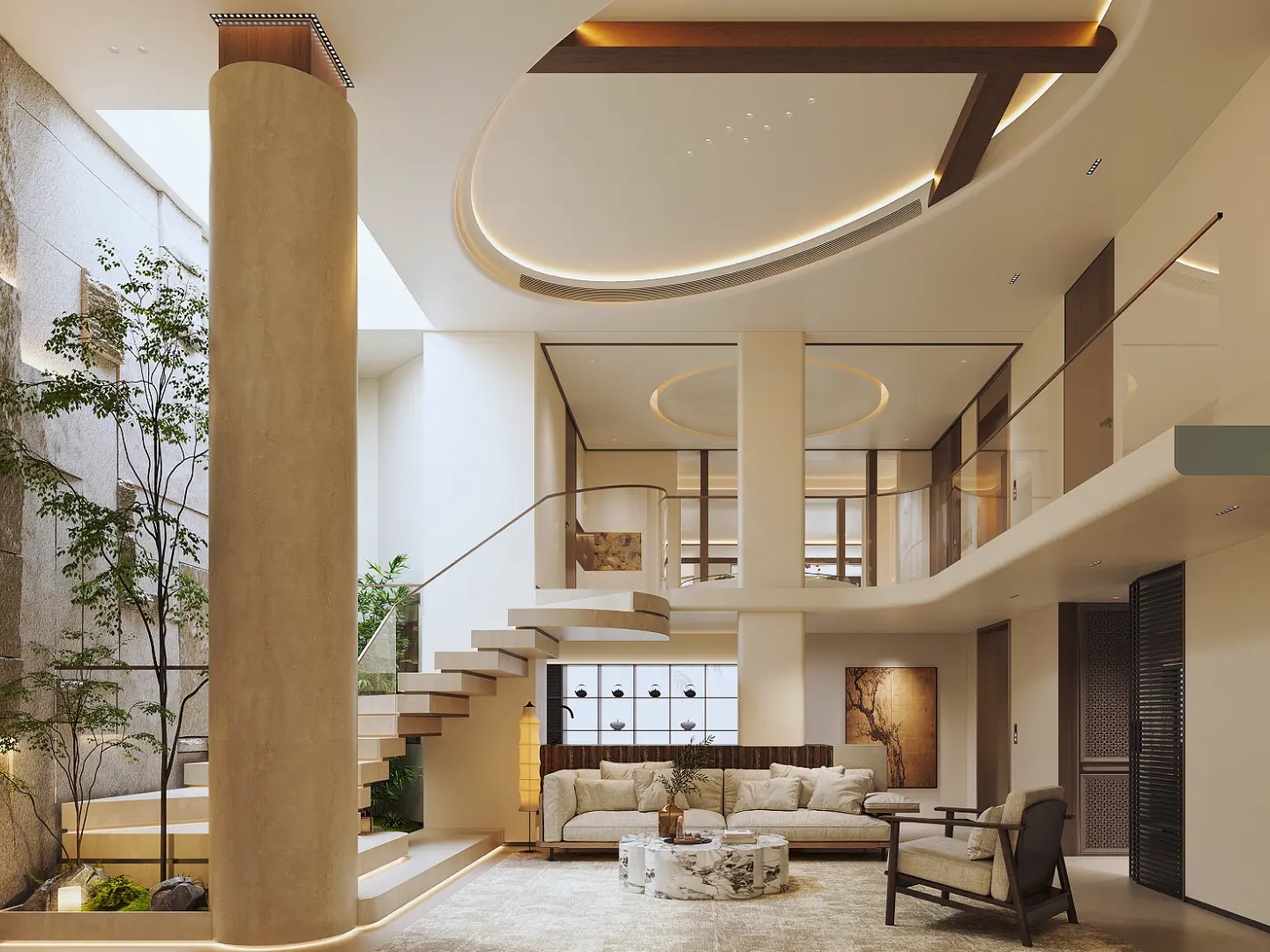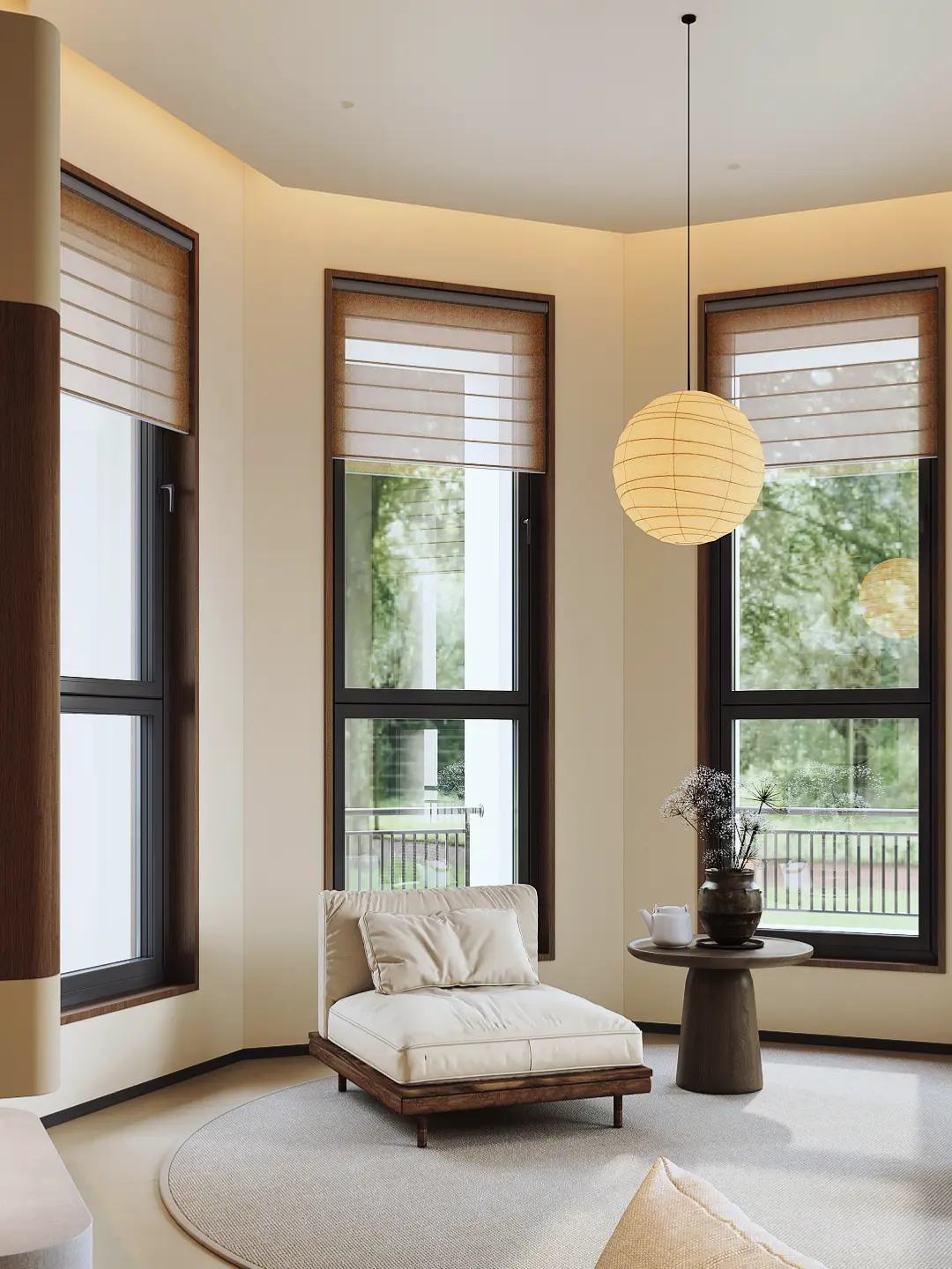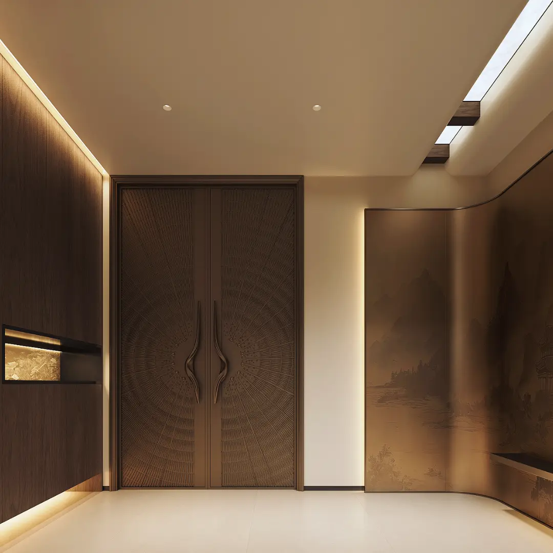 没有乍见的惊艳,只有久处的安然。微水泥的墙面保留了手工的痕迹,原木的纹理诉说着生长的年轮,纸与麻的肌理在光影里呼吸。东方不是符号,是留白的智慧——一个石钵,一枝枯木,半幅素帘,便有了四季的来去。风穿过庭院的竹,水声在石槽里低语。这里不急着填满什么。你坐下来,茶慢慢热,光慢慢移,心慢慢静。