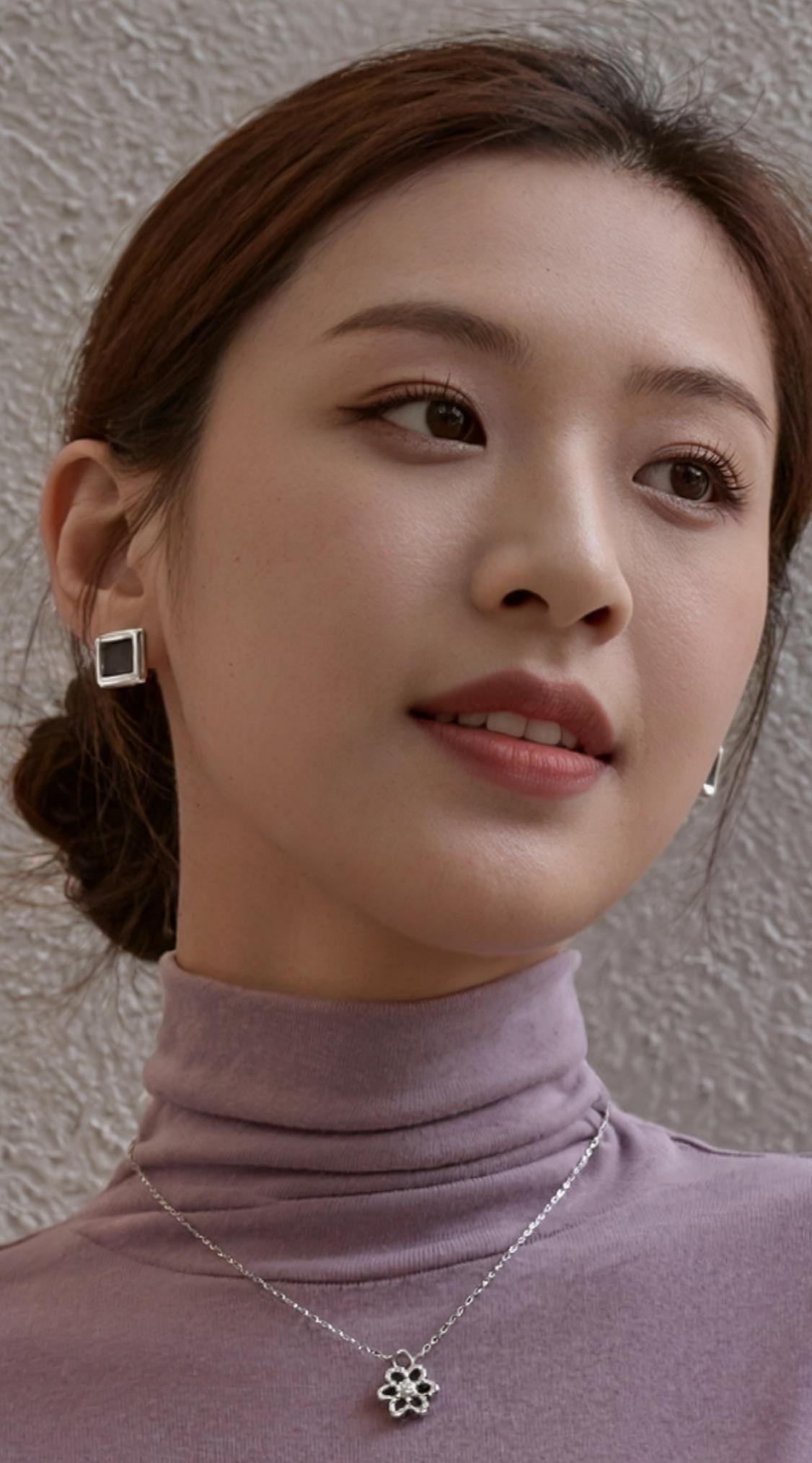 这高领毛衣穿得,脖子都快成“绝缘体”了,连寒风都吹不进去。项链上的小花倒是抢镜,
