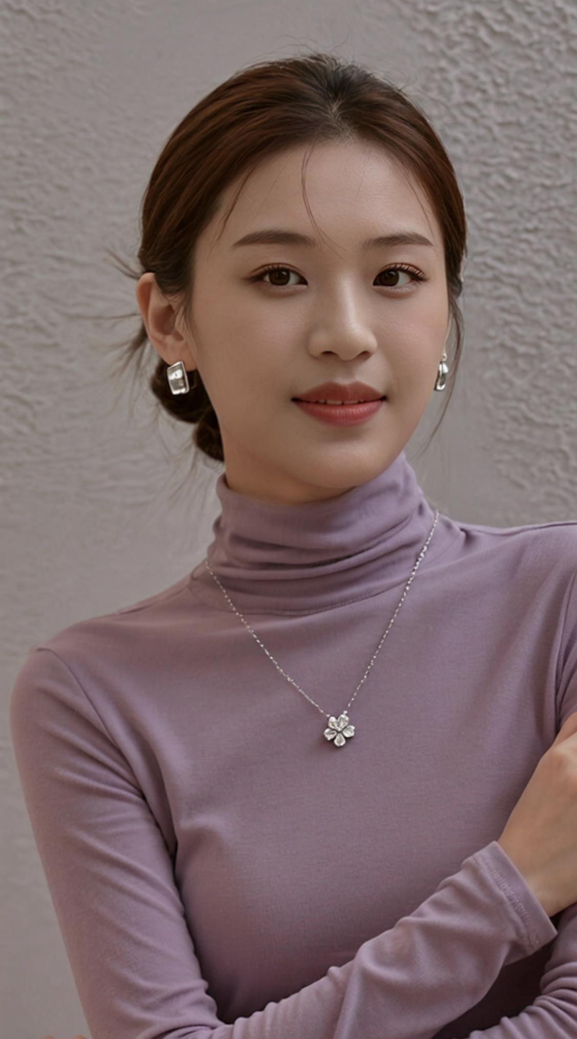 这高领毛衣穿得,脖子都快成“绝缘体”了,连寒风都吹不进去。项链上的小花倒是抢镜,仿佛在说:“看我,看我,我才是亮点!”拍照技术也不错,背景虚化得刚刚好,让人物更突出。不过,这姿势是不是有点太“端庄”了?来个搞怪表情会不会更有趣?AI写真拍照新姿势时尚绝缘体AI高质感写真