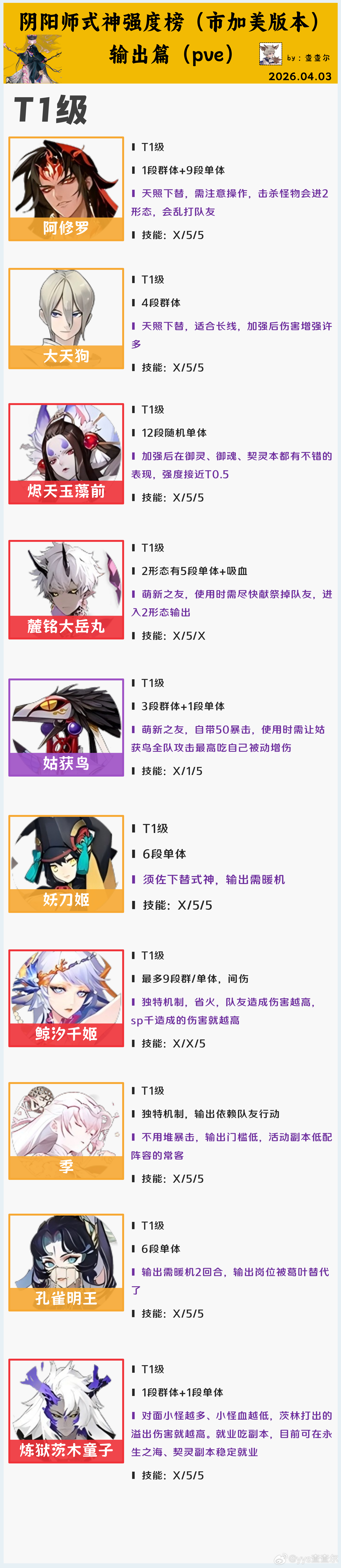 阴阳师手游超话创作官acg优创官 【2026必养式神指南】4月pve式神排名梯度榜(市加美版本)■因篇幅限制,此内容写的比较精简,如果不知道该优先配养谁,某式神是否需要培养2号机,可在评论区问我