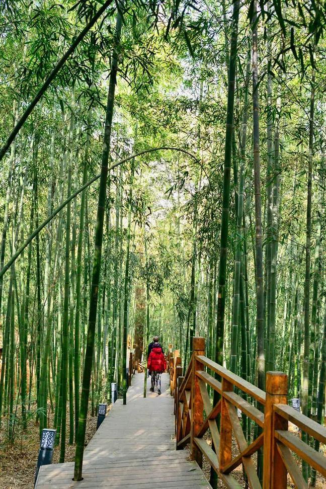 世界上竟有这么清幽的地方。说是陕西周至县的楼观台景区。竹林面积达1550公顷,号称北方最大的竹林观赏基地。现在春日花开,绿树发芽,天气不冷不热。面对笔直的竹林,风吹摇曳,行走期间,有漂亮的木栈,树影在人的身上摇曳。置身在林海之中,仿佛进入了一个清幽的境界。偶尔还有亭台楼阁,供游客歇脚。实在是诗情画意,跃然心间。偶尔还能碰到流水,潺潺溪流,涌动在竹林之间,泛着青影,你会觉得非常的惬意。我想着不要有人打扰,就一个人在竹林间悠悠的行走,感受那里的风光。某一个地方你可能想待很久,某一个地方可能你想一闪而过。都随自己的心境,都有一片心情。仿佛你在和谁对话,不需要语言,目之所及,都是心灵的愉悦。这不正是朝思暮想的境界。 我想那木质的路面,人踩其上,吱吱作响,仿佛是美人在你耳边的低吟。遥望其上的亭台,仿佛上面有神秘的人物在等着你,他能说出有趣的话语,让你心间一亮,感受到人世的趣味。或者悠悠的流水,在林间穿行,带着对岁月的寂寞,带着对时光的珍惜,带着对未来的美好期盼。无论多么疲惫的心灵,在这些竹林间,都能得到很好的安歇。这是人生多么愉快的一件事情。和陌生的人,走进陌生的城市。开始陌生的故事,忘记曾经的过去。仿佛一切都是新的,一切都有无限种可能。仿佛这座竹林,因为你曾穿行期间,思索其中,而使它有了文化底蕴,它成了众人都向往的地方。终南风景 鄠邑周至 古楼观秋色 楼观旅游 周至竹海