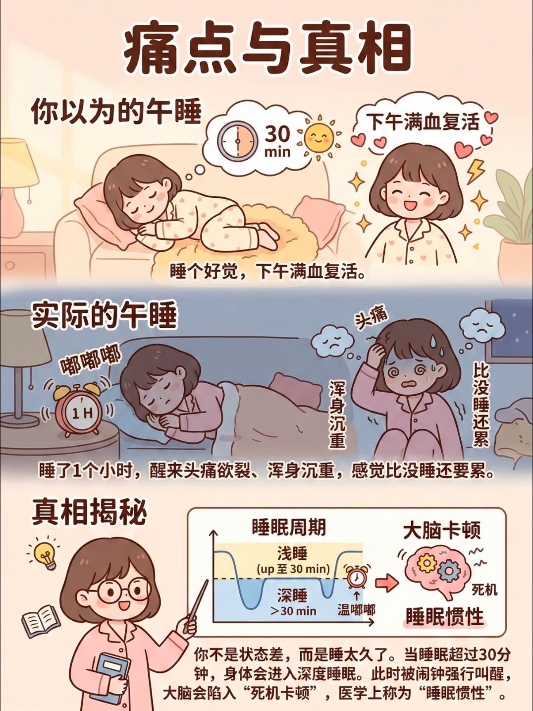 午睡时间超1小时死亡风险增加30%我平时午睡但凡超过一个小时,睡醒就会晕乎乎的!