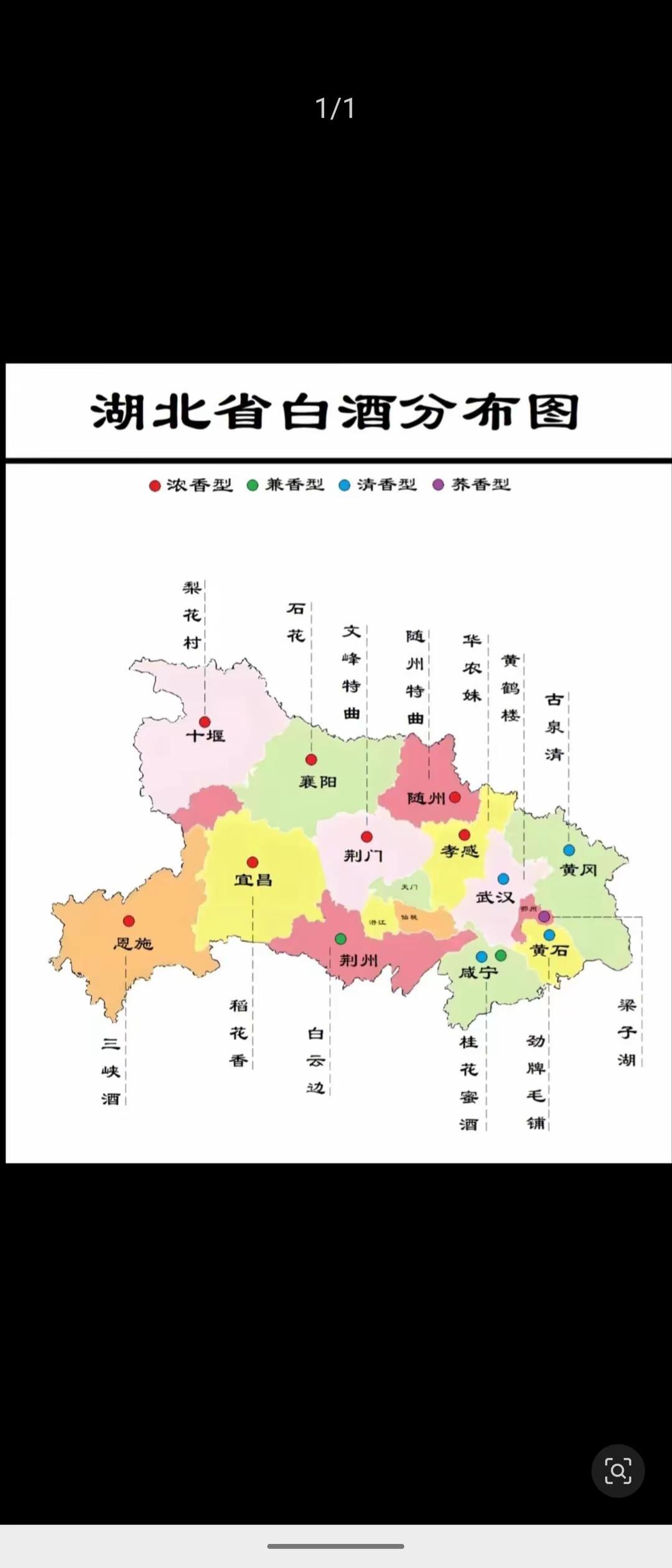 分布图以颜色区分香型(浓香红、兼香绿、清香蓝、荞香紫),呈现省内白酒产业的地域格局。从分布看,浓香型占比最高,十堰、襄阳、宜昌等多地标注(如梨花村、石花、稻花香),体现其作为湖北白酒主流香型的地位,反映酿酒原料(糯米、高粱)与工艺的适配性。兼香型集中于荆州(白云边)、咸宁(桂花蜜酒),依托江汉平原与丘陵水热条件,融合浓酱风味的工艺创新。清香型在黄冈、武汉、黄石零星分布(古泉清、劲牌毛铺),或因小众工艺与区域消费偏好。荞香型仅鄂州1处(梁子湖),属特色小众,依托荞麦种植与差异化定位。地理上,白酒分布与区域农业(粮食产区)、水系(酿酒水源)关联紧密:江汉平原是浓香、兼香核心区,鄂西山地(十堰、恩施)因气候土壤形成独特小产区。香型多元既源于自然禀赋,也受历史传承(如稻花香的区域深耕)与市场选择驱动,展现湖北白酒“一主多元”的产业生态。