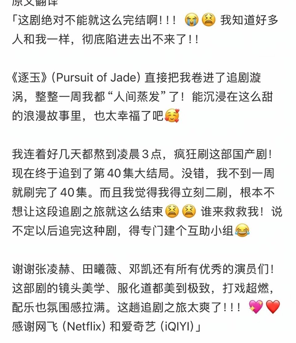 好莱坞华裔明星温明娜发了逐玉特地选了和张凌赫的一个画面合影哦!!! 她表示看完逐玉太幸福了立刻想要二刷~也艾特了凌赫特地表示感谢优秀的演员们文化输出太牛了!温姨也一直致力于推荐中剧和中国文化给世界Ps:温姨是好莱坞的华裔明星,曾经出演《神盾局特工》1993《街头霸王》的春丽,1998年动画版《花木兰》的配音(初代花木兰),《喜福会》《好汉两个半》等