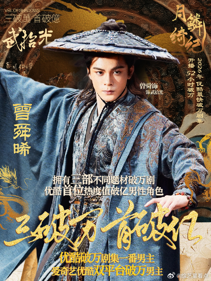 曾舜晞优酷站内首个破亿男性角色 最近的热度真的是遥遥领先啊,恭喜恭喜曾舜晞优酷站
