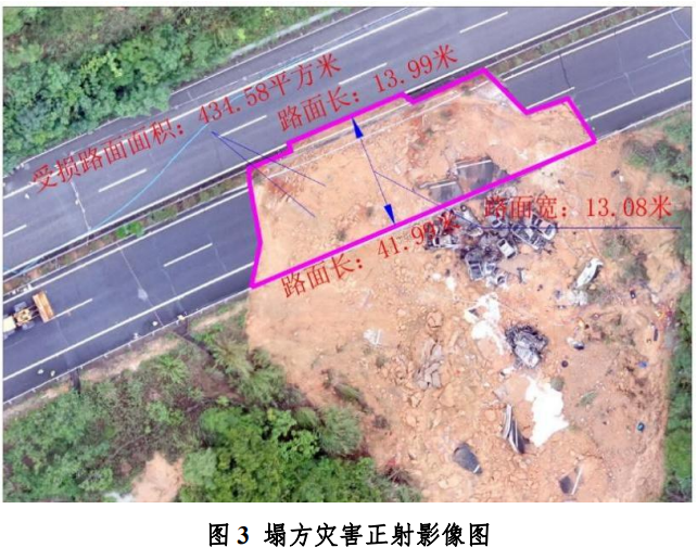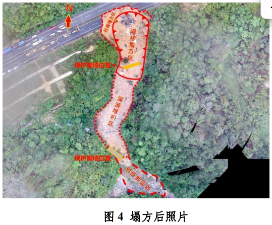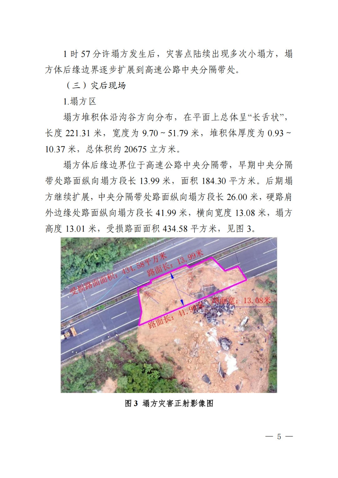 1时57分许塌方发生后,灾害点陆续出现多次小塌方,塌方体后缘边界逐步扩展到高速公路中央分隔带处。
