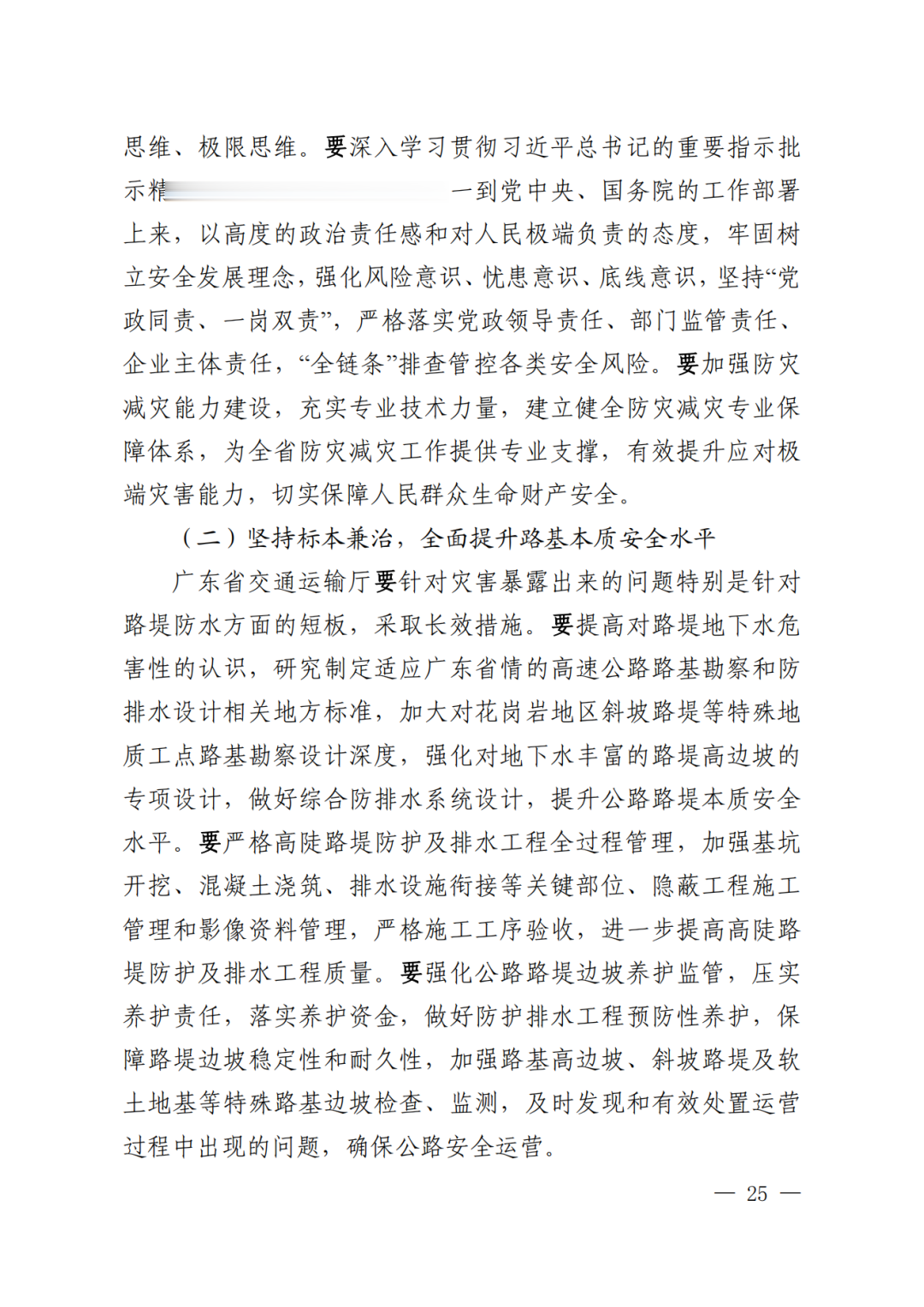 报告显示,灾害发生以来,广东省交通集团有限公司开展地质灾害风险隐患排查整治,累计排查重点边坡11370处,发现风险隐患4252处,均已完成治理。