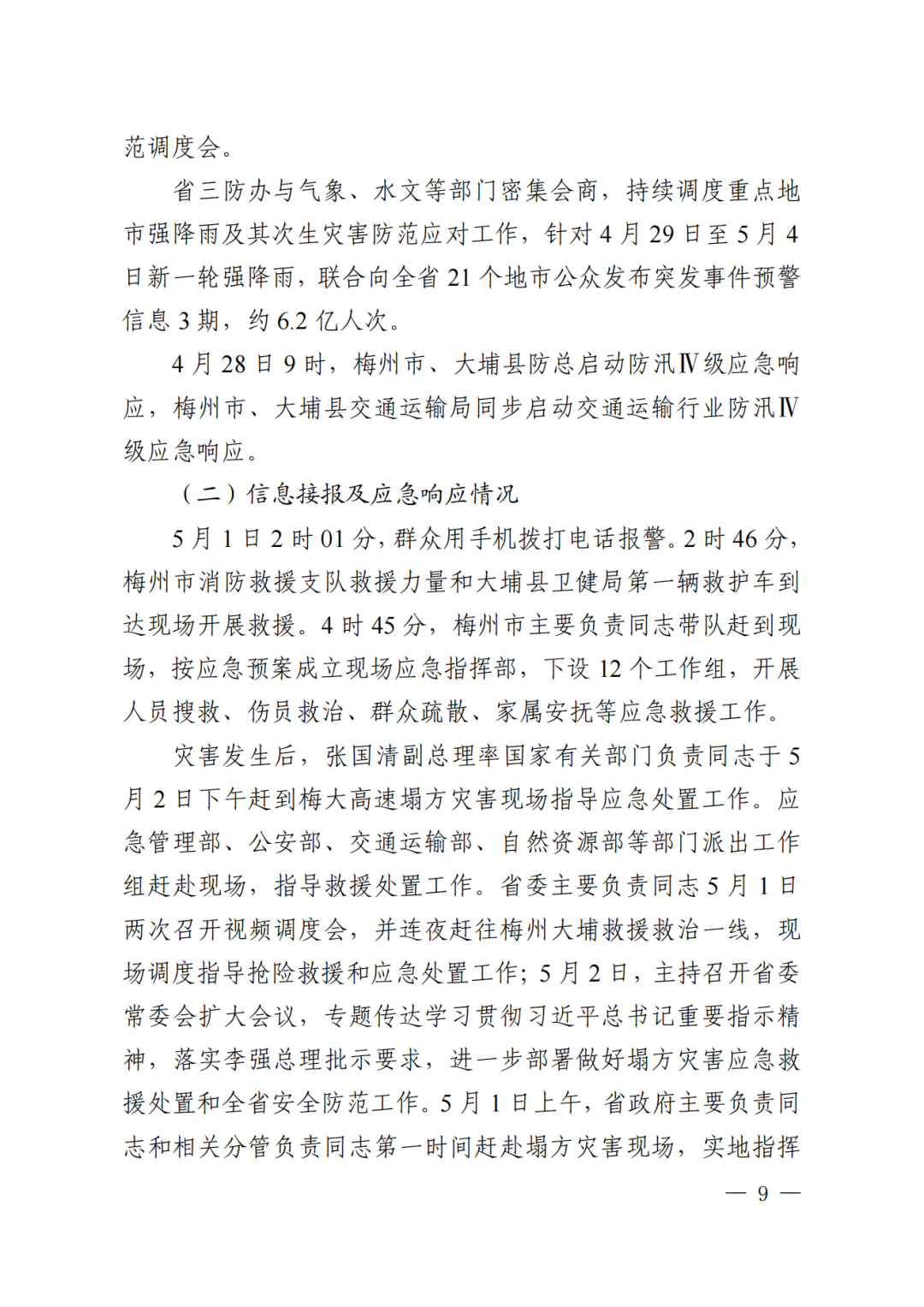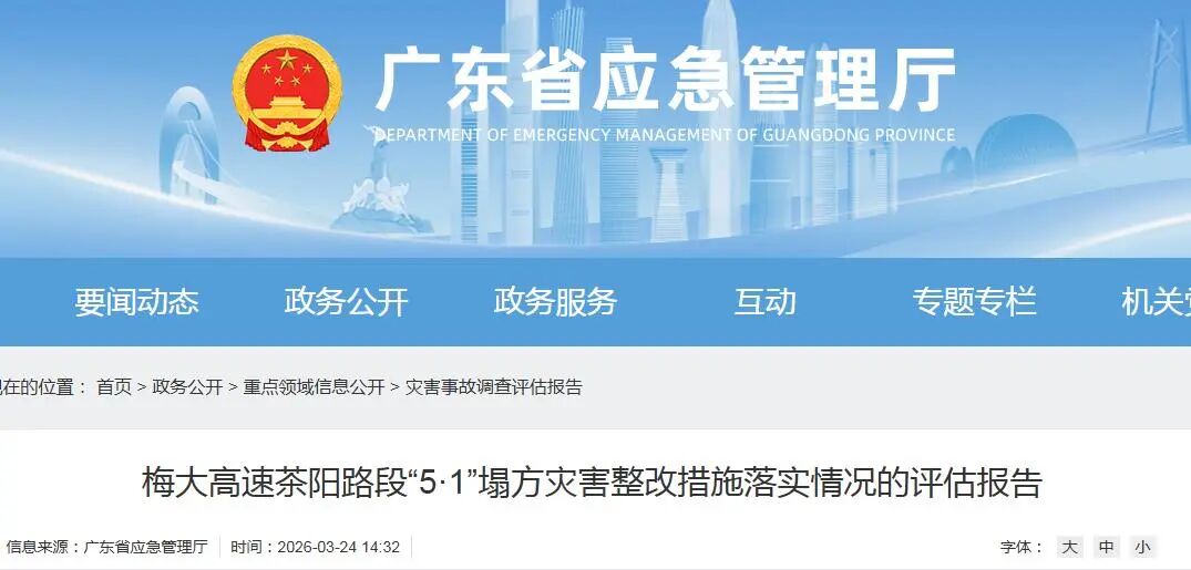 近日,广东省应急管理厅发布了《梅大高速茶阳路段“5·1”塌方灾害整改措施落实情况的评估报告》。