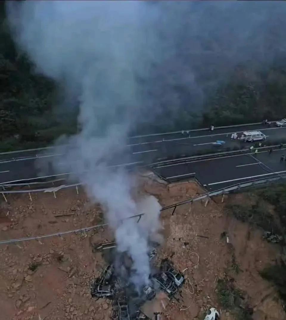 1时58分许至2时07分许,塌方点共掉落23台车辆。其中2时04分许一台汽车开始冒烟,随后起火,引发共21台车辆烧毁。