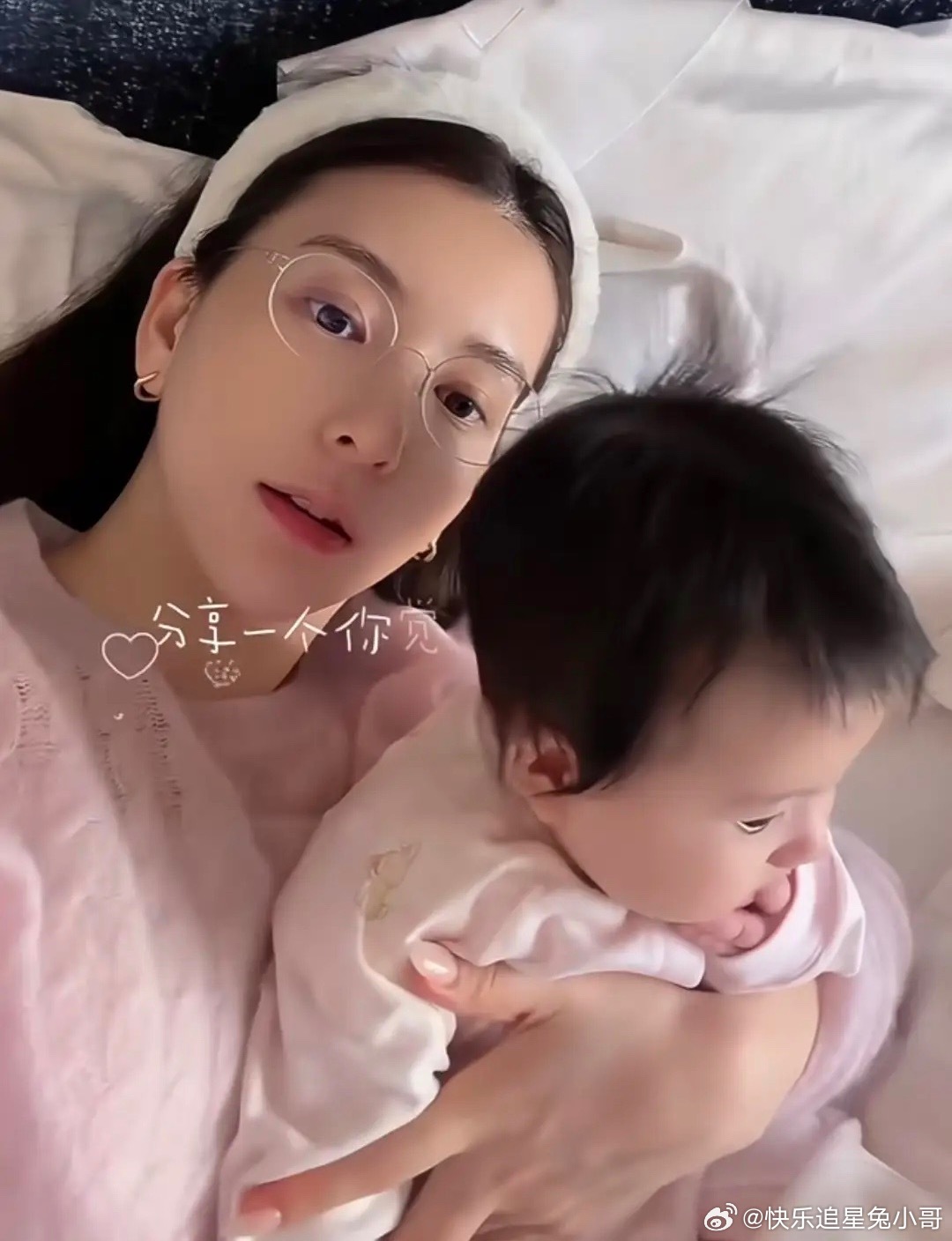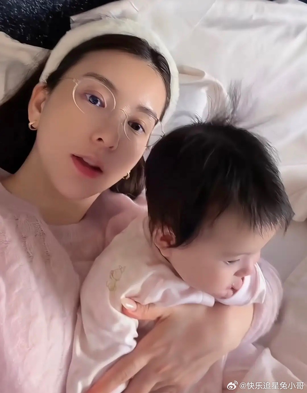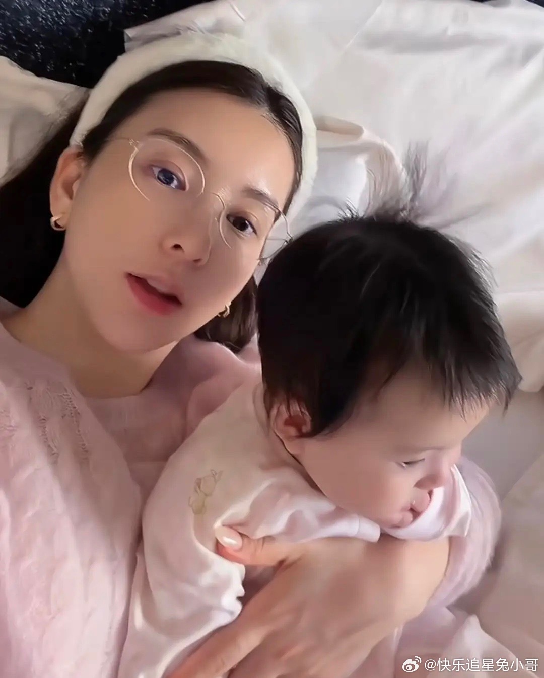 方媛抱着三胎女儿睡午觉,5个月郭咏心半坐着,皮肤好白,头发又黑又密,侧脸有点像小男孩,感觉长得像爸爸郭富城,脸颊胖嘟嘟非常可爱,难得见到宝宝的长相,方媛还是挺大方的,比很多晒娃但遮掩五官的要好很多,女儿好看当然要晒一下。