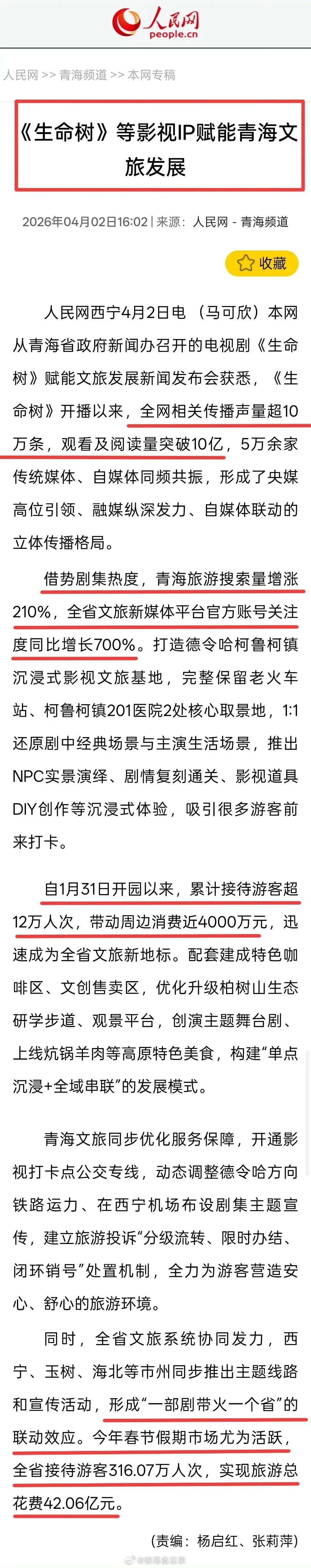 影视剧的影响力太绝了!《生命树》不仅让青海出圈,更拉动近四千万消费,文旅关注度飙升7倍