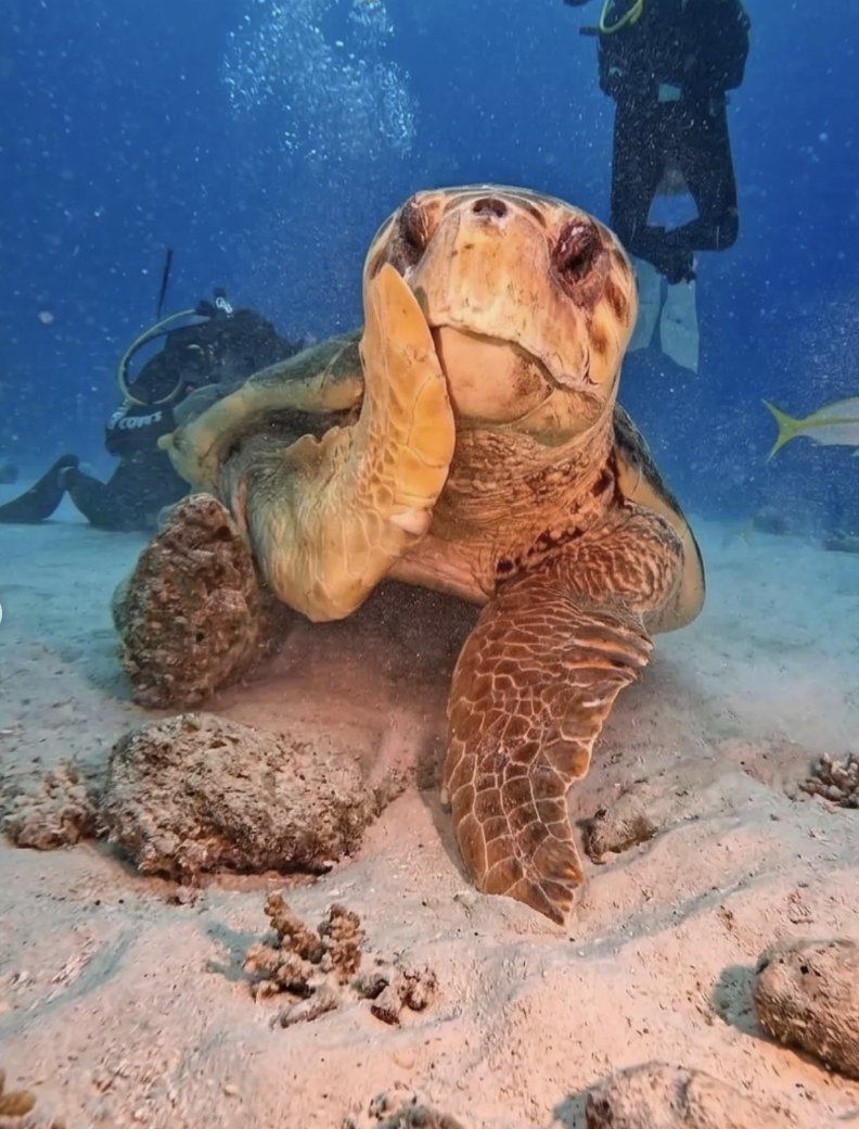潜水员海底偶遇一只“社恐”海龟,被镜头捕捉到一脸害羞的模样走红~