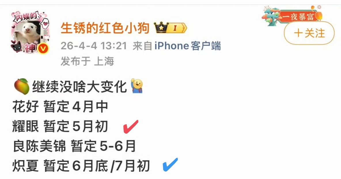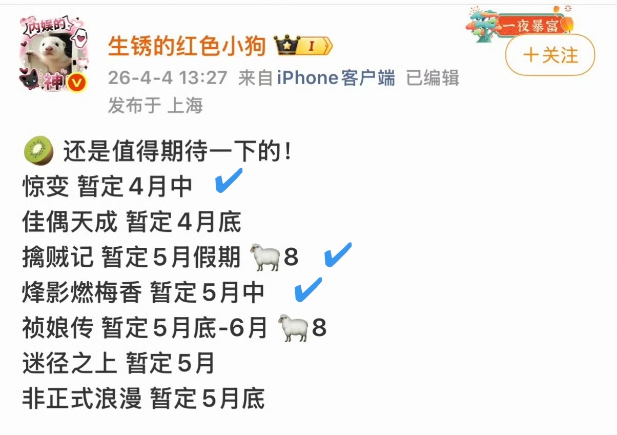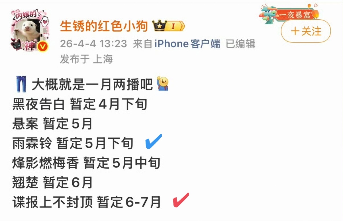 每次看待播剧还是期待满满的红✔必看,蓝✔看看时间和评价