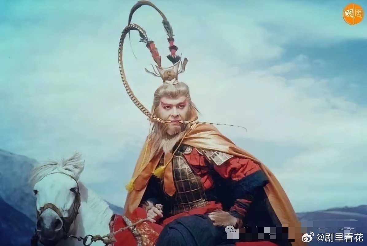同样是头上有雉鸡翎紫金冠造型,看完粉底液将军,再看郭政鸿的通臂猿猴,高下立判。郭政鸿不仅是演员,也是龙虎武师出身,本身是有底子。在TVB的《西游记2》里,他的通臂猿猴设定是“妖猴”,搭配上他本身灵动的演技,即便妆很浓,你也不会觉得违和。小时候看,他登场,绝对是压过陈浩民饰演的孙悟空的。以前看我都怕孙悟空被他打死,这就是通过演员演技的加持所散发出来的强大角色气场。而且通臂猿猴这个角色,到至今为止都只有他一个人演过。成为郭政鸿演艺生涯的代表角色之一