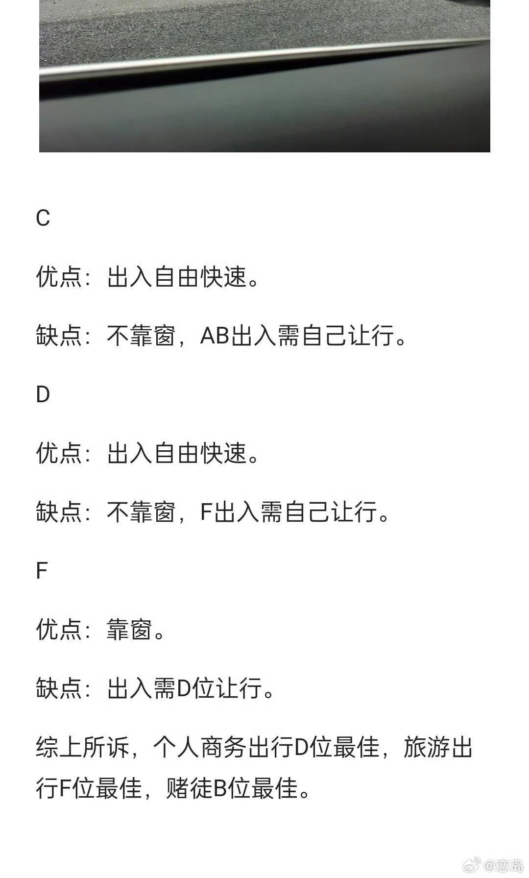 为什么高铁 F 座最受欢迎? 常年出差的人绝对是D,这毫无疑问,选F的是偶尔出行的。