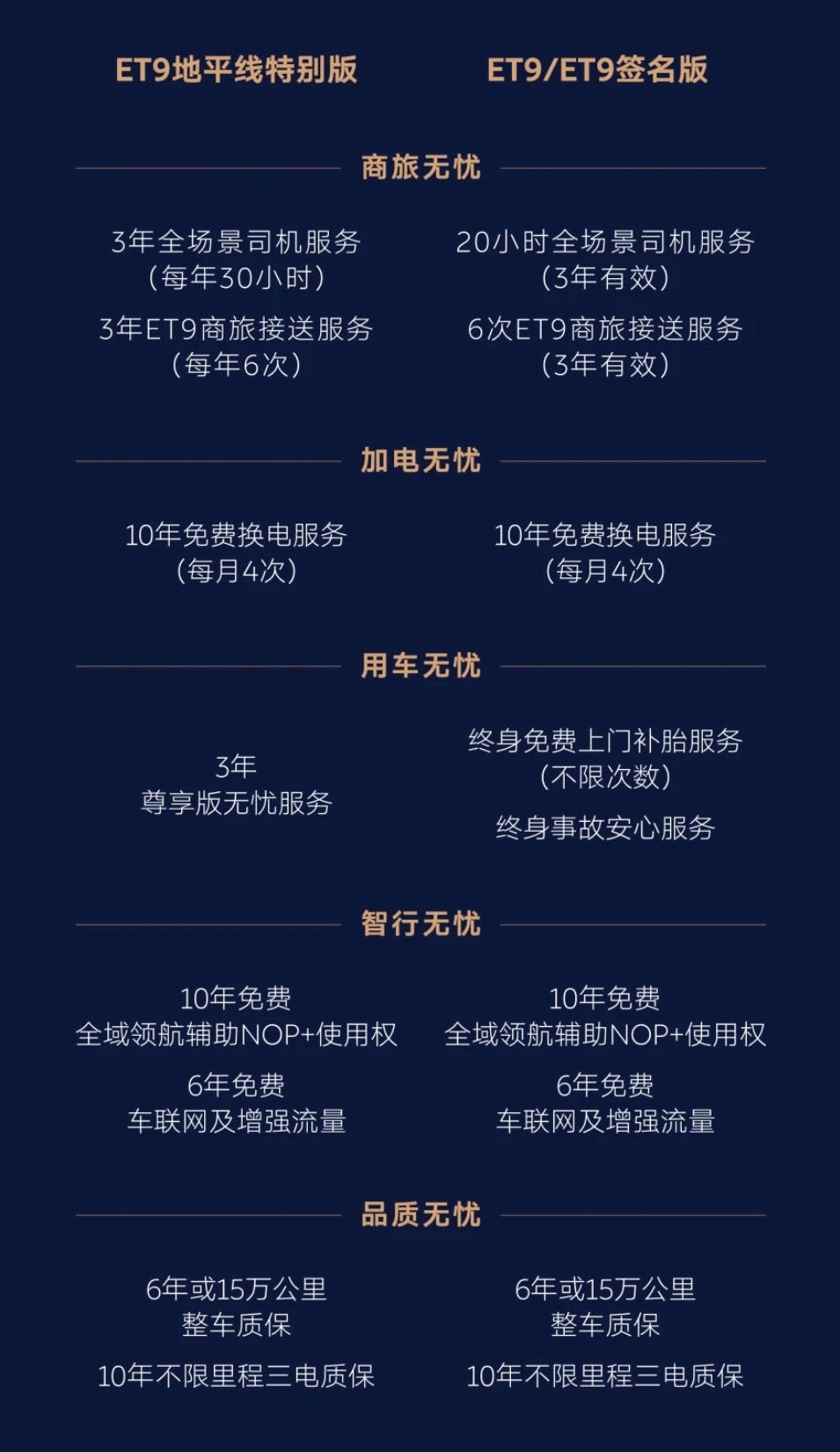 蔚来蔚来ET9 看到一个消息很有意思,面向的是ET9的用户,作为目前蔚来最顶的车型,又是商务属性拉满的车,ET9自上市以来,蔚来提供了「无忧尊享权益」,涵盖「商旅无忧」「加电无忧」「用车无忧」「智行无忧」「品质无忧」。肯定也是希望这些权益可以服务好更多的高端商务用户。当然了,这些权益有的可能很必要,比如加电;有的确实不是人人都需要,比如商务旅;所以在购车成本上难免会让这些客户有些取舍。现在蔚来将这些需要更加灵活的排列组合,无论是已经提车的还是准备买车的,老车主如您选择放弃「商旅无忧」、「加电无忧」及「用车无忧」三项权益,蔚来将向您发放 10万元焕新购车礼金券,并且依然会为您保留自首次车辆激活之日起2年内ET9「无忧尊享权益」完整使用权;而新车主更是可以在购车时确认无需「商旅无忧」、「加电无忧」及「用车无忧」三项权益,我们将为您保留「智行无忧」、「品质无忧」ET9专属权益,并为您直接减免10万元车价。这一下复购or直接购买ET9就更灵活了,商务需求高的,蔚来的服务我觉得肯定能帮这部分车主创造出大于10万的价值;而不太需要的,也降低了购车成本,可以更放心的选择ET9。