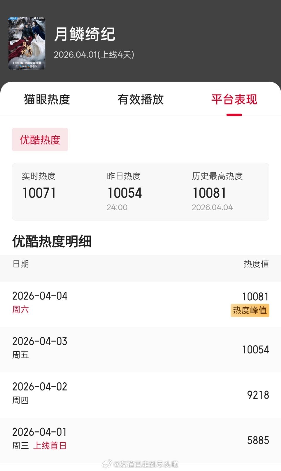 新剧看三天,《月鳞绮纪》目前连续两天热度破万,云合日播放量站稳3000w大关,这剧扑是肯定不会扑的了,能播到集均3000w的话妥妥算热播小四的作品一直被诟病像mv,但是目前保持0扑街记录,《云之羽》《大梦归离》《月鳞绮纪》都比大多数古偶播得好,真的就是有他自己的受众在,底盘很稳