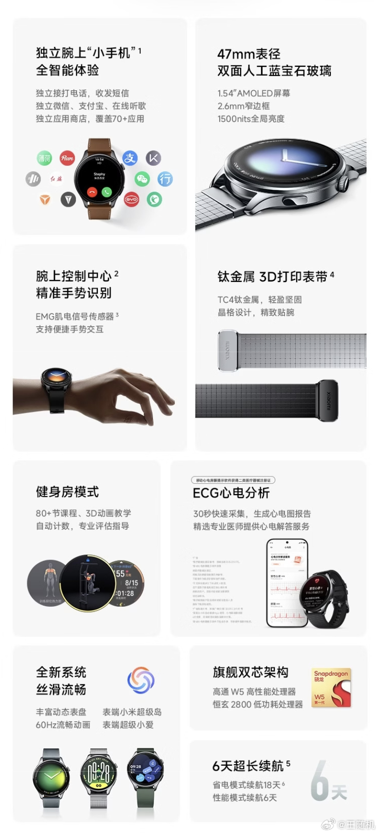 小米手表 5 新增黑色 eSIM 版,双芯双系统架构、支持联通移动,并首发手表端