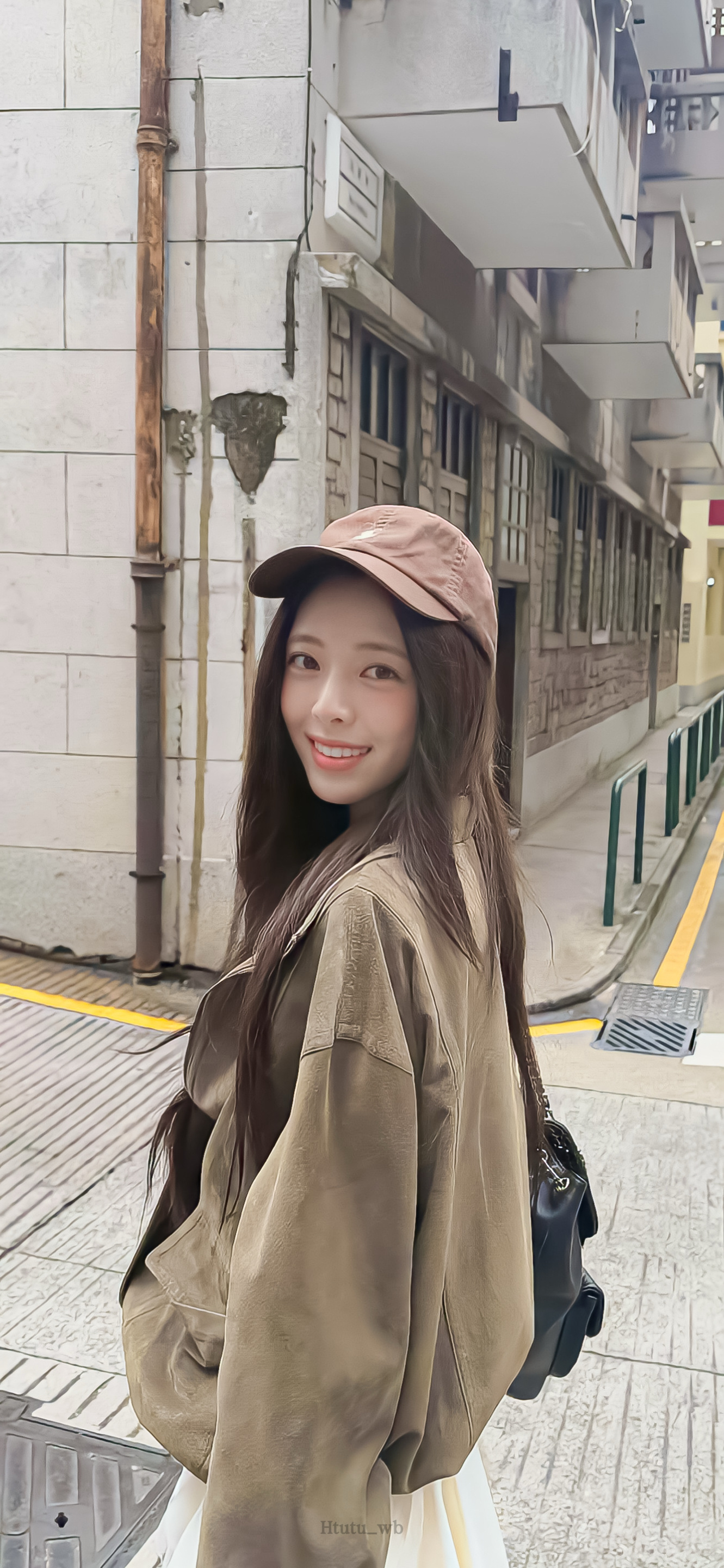 关晓彤壁纸~白裙配黑长直,在城市背景下超级美!