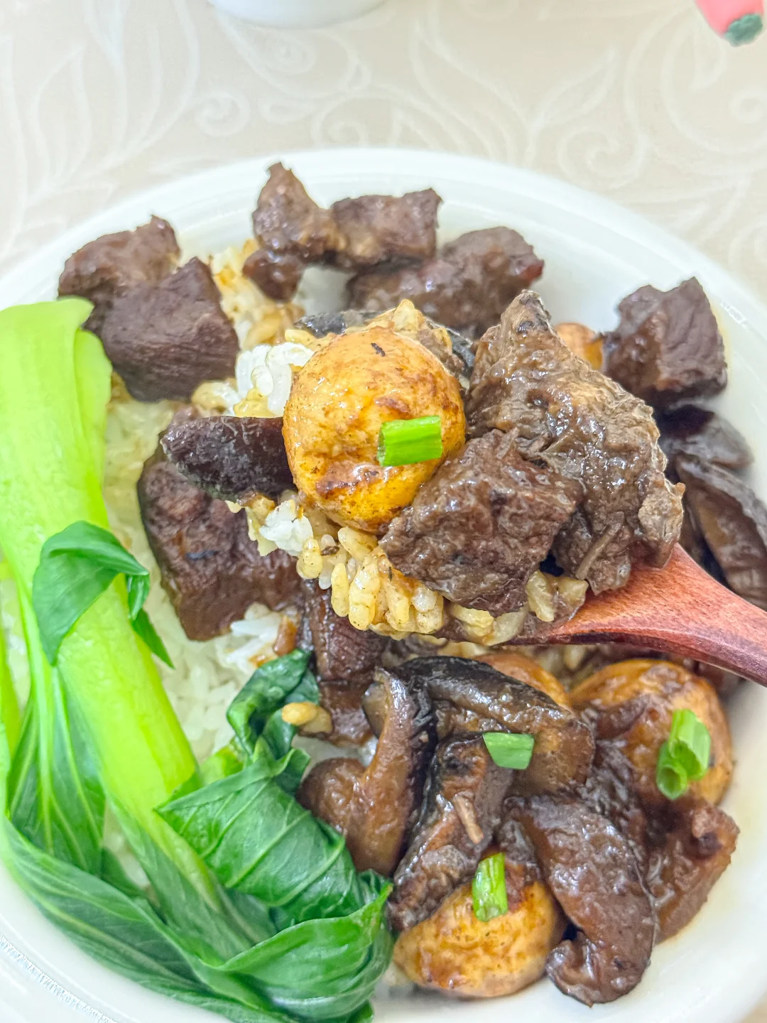 ✨牛肉软烂一抿就化,鹌鹑蛋吸饱汤汁,洋葱焦香是灵魂!连炫三碗饭不过分~