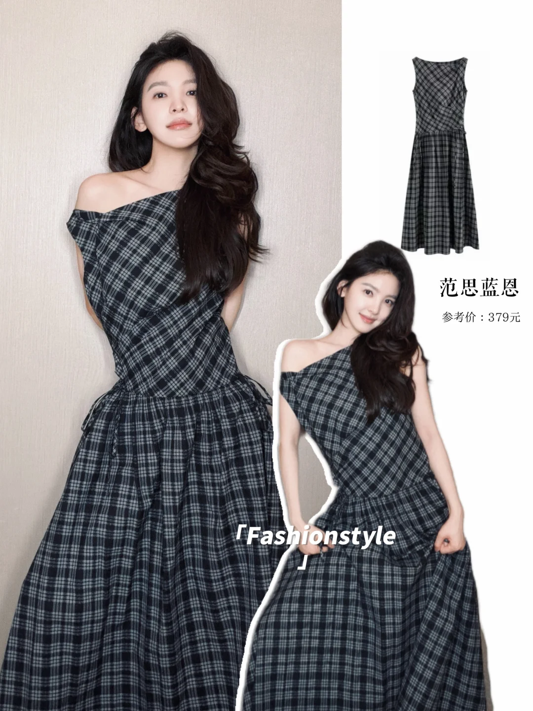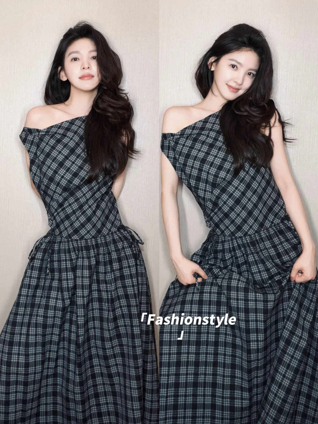 最近更新的,大波浪搭配一字肩格纹裙,跟以往的风格很不一样,这扑面而来的女人味哇~