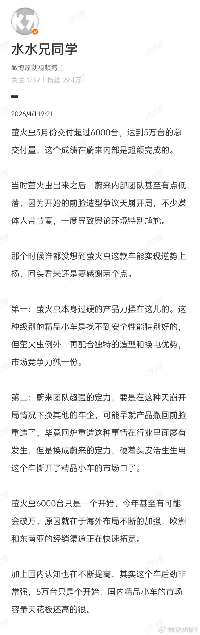 蔚来萤火虫这波逆袭,核心就一句话:用产品硬实力把“丑”标签撕了,靠精准定位把市场打穿了。