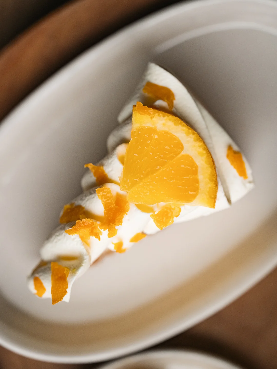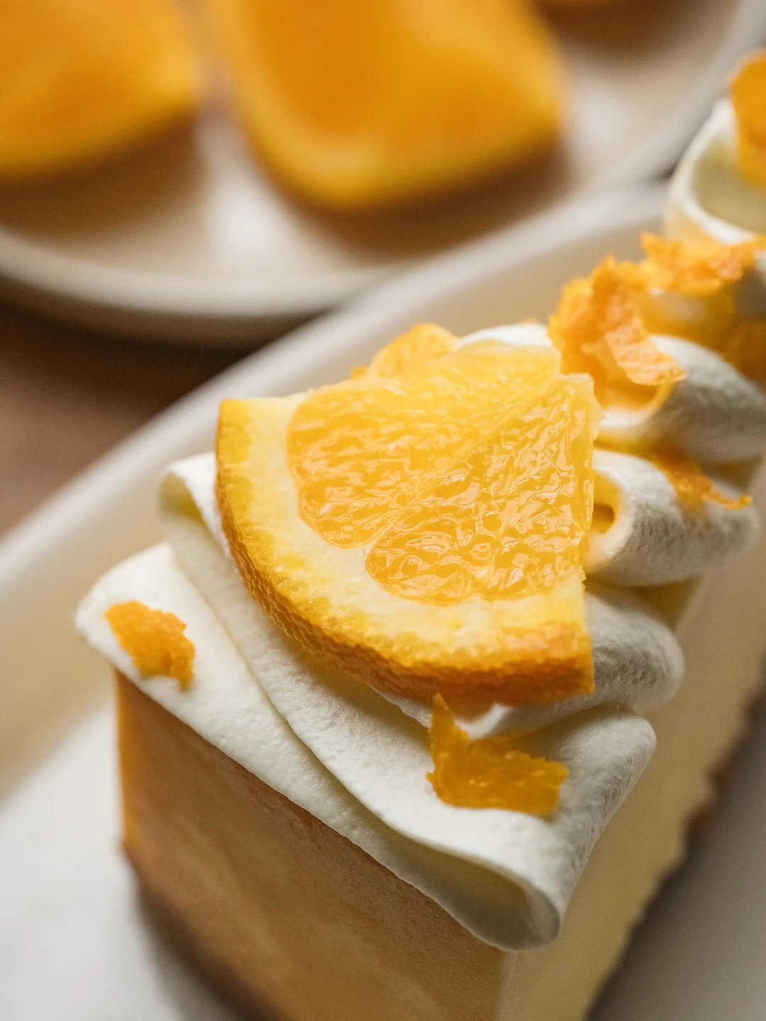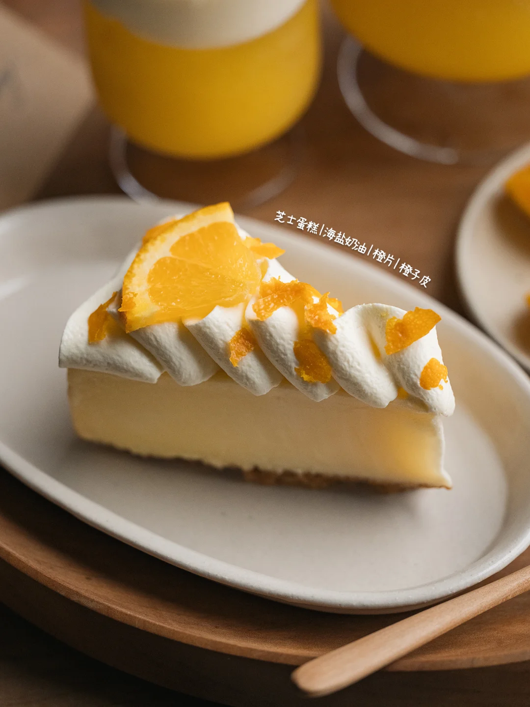 多的橙皮削成屑,点缀在芝士蛋糕上