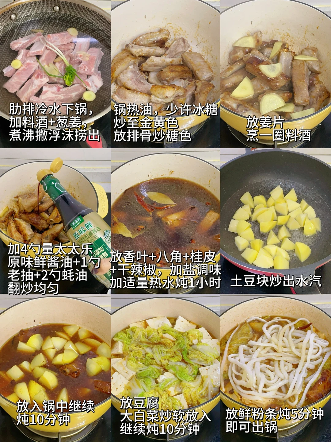 做法很简单,大烩菜就是把排骨炖好,加上土豆白菜豆腐粉条这些菜一起炖就可以啦,一大锅够一家人吃。过油肉把里脊过油后,我加了好吃的0添加酱油-太太乐原味鲜,味道就很好了。0添加,配料表简洁,所有成分来自熟悉食材,吃着安心。