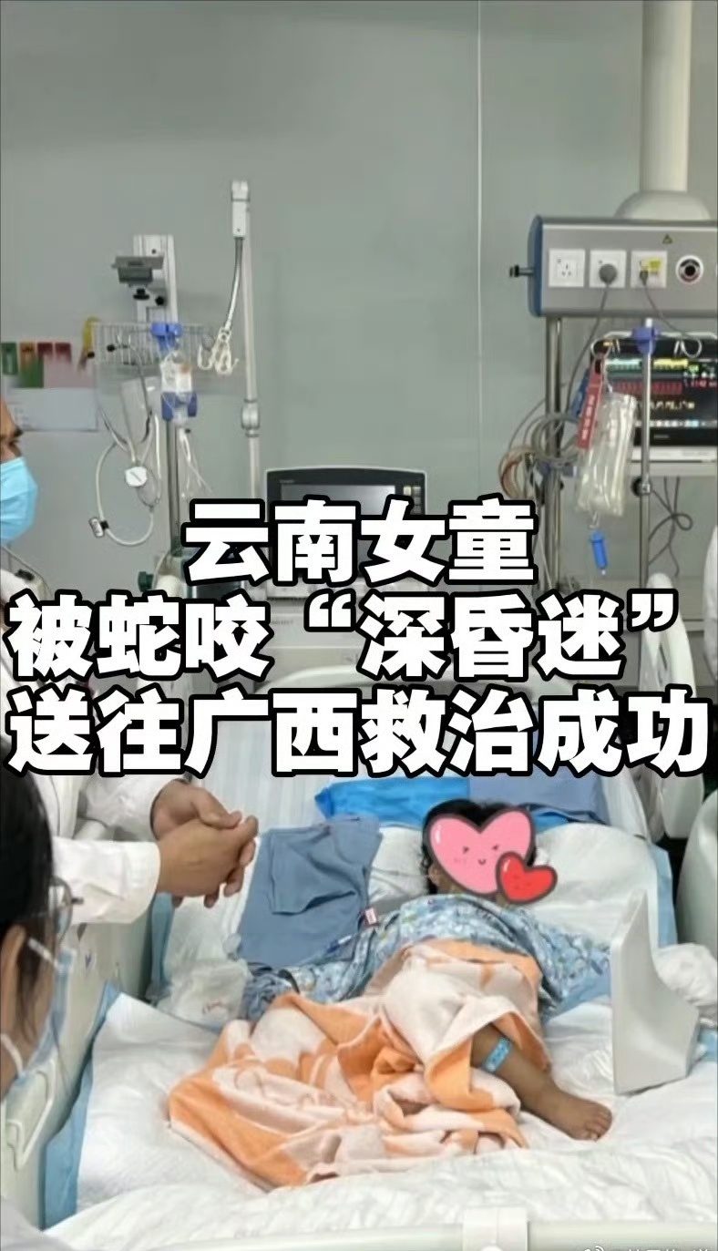 医院立刻启动紧急救治预案,第一时间调配足量抗蛇毒血清,为患儿快速注射。令人惊喜的是,血清输入体内仅1小时,生命奇迹就悄然发生:此前毫无反应、如同昏迷一般的女童,手指、脚趾开始慢慢自主活动,原本涣散无神的眼睛逐渐睁开,意识瞬间从深度麻痹转为完全清醒,原本微弱的呼吸也慢慢变得平稳。从被毒蛇咬伤后假死垂危,到注射血清1小时奇迹苏醒,这场跨越千里的生命接力,万幸换来的是有惊无险。春夏季节毒蛇活动频繁,家长务必看管好年幼孩子,远离草丛、墙角等毒蛇易出没区域,一旦被蛇咬伤,要立刻记住蛇的外形,第一时间送往专业医院救治,切勿自行处理延误黄金救治时间。3岁女童被毒蛇咬伤假死3天奇迹生还