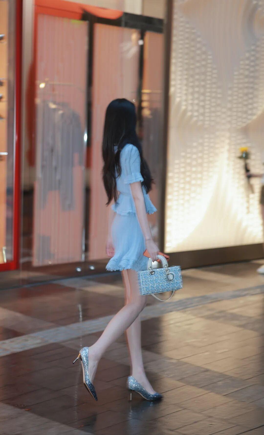 配饰点缀:搭配闪钻手提包与亮片高跟鞋,blingbling的质感奢华吸睛,提升整体精致度。