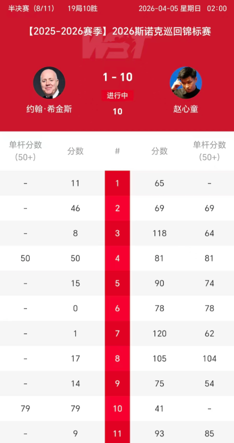 10:1!赵心童最终还是放了老张一局,也算是给老同志留了一点面子。9:0领先的时候,赵心童就想着怎么送一局了,还要尽量做的隐蔽以免给自己招来麻烦。上一个被他打9:0的是颜丙涛,第十局他是怎么送都送不出去。今天希金斯还是领了他这个人情,毕竟老同志自己面子也挂不住嘛!