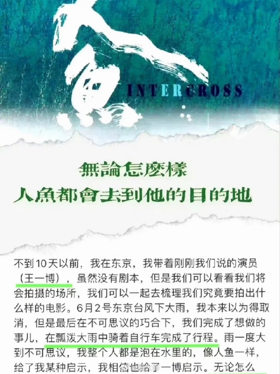 用户10xxx37 8 2026-04-06 19:12 《人·鱼》是纯粹作者电影和超级艺术片,延续程耳一贯的美学风格,也是王一博在《探索新境》中让自己“脱胎换骨”,对演员这一身份有了更透彻的认知的电影。这个电影最神奇的地方在于,制片人亲自下场说已拍,已杀青,但是就因为没有任何路透,广大营销号们愣是无死角分析力证人鱼没拍,王一博在抠脚!