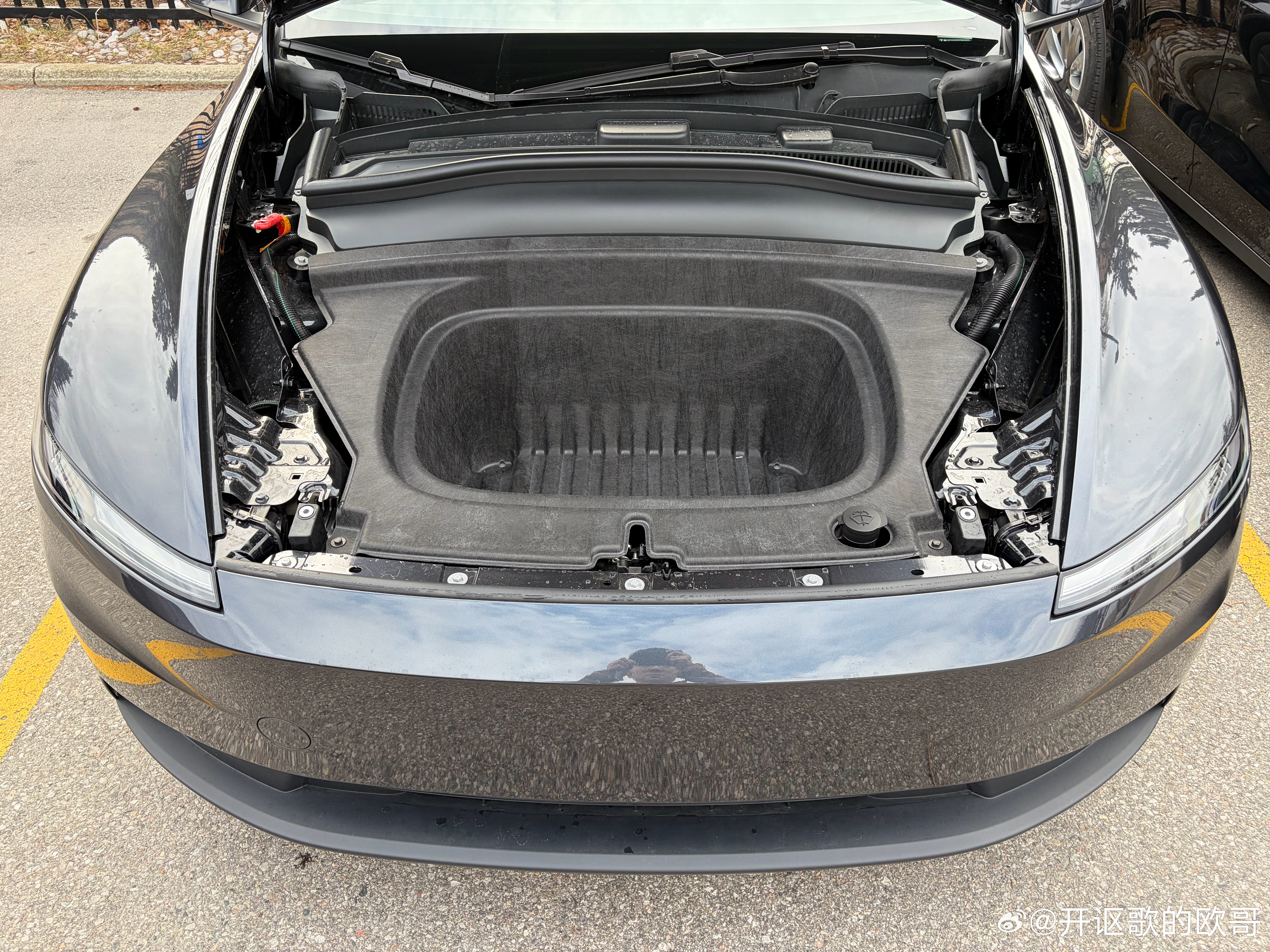 前备箱并不是像Premium那样是防水设计,而且也没有覆盖其他零部件,要放置物品的话得考虑什么物品可以放在这里。