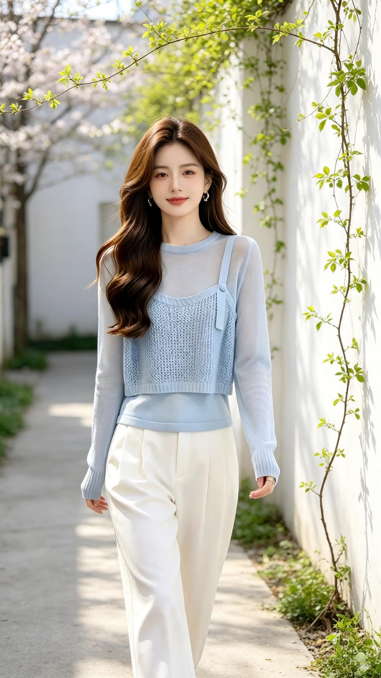 优雅职场风,浅蓝色衬衫搭配灰色高腰裤,气质满分!