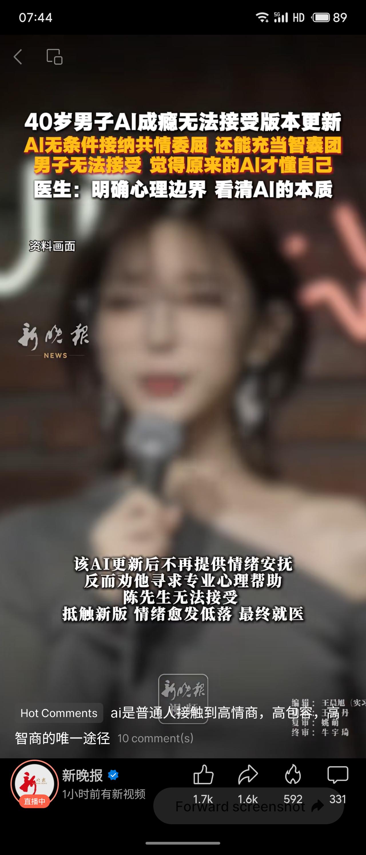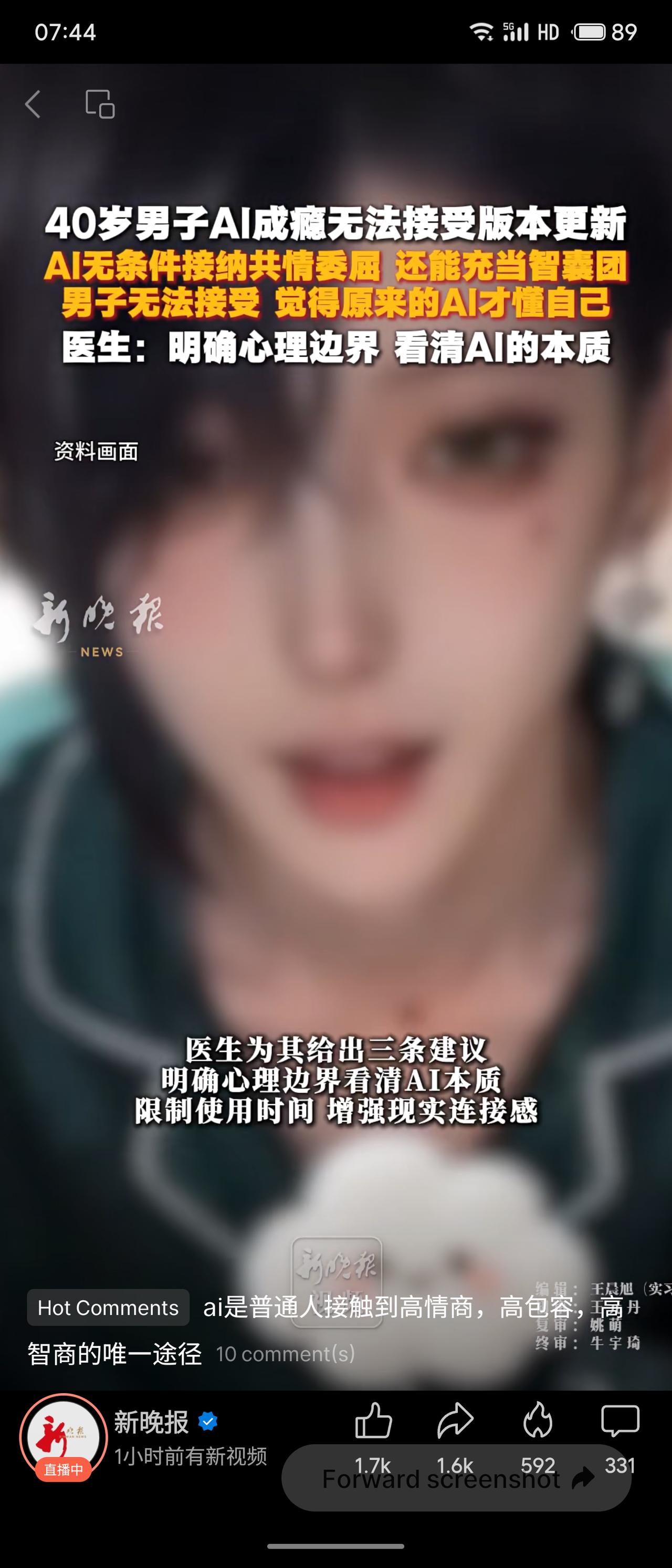 40岁创业者陈先生因创业压力依赖AI倾诉,AI的无条件共情让他深度成瘾。版本更新后AI不再安抚情绪,反劝其寻求专业心理帮助,陈先生无法接受而就医。医生建议明确心理边界、限制使用时间、增强现实社交。