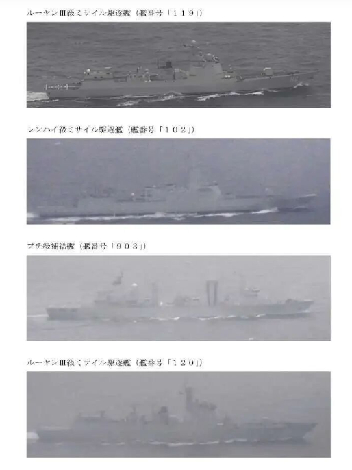 据日本防卫省4月1日通报,一支中方海军舰队穿越对马海峡进入日本海。编队包括1艘055型驱逐舰、2艘052D型驱逐舰、1艘电子侦察船和1艘903A综合补给舰。日本自卫队紧急出动舰机跟踪监视。